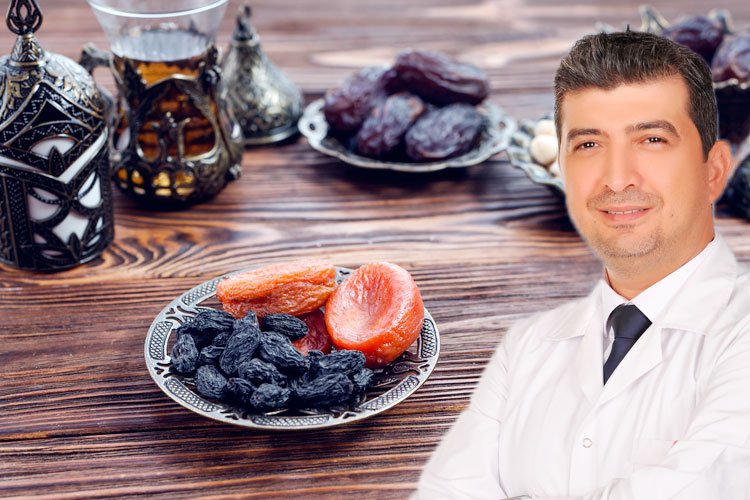 Ramazan ayında metabolizma hızının %30-35 düştüğünü belirten Dr. Erdem Sarı, “Sahur ve iftarda yüksek karbonhidratlı (şerbetli tatlılar vs.) yiyeceklerin tüketilmesi, kan şekerini olumsuz etkiler. Yanlış beslenme Ramazan ayı sonunda fazladan alınmış kilolara neden olur. İftarda gıda alımı öncesi en az 2 bardak su içilmeli, yemeğe az yağlı çorbalar ile başlanmalıdır. Yemek süresi uzatılmalı, lokmalar bolca çiğnenmelidir. İftar mutlaka bölünmeli ve katı gıda safhasına geçiş öncesi vücudumuza hazırlık şansı vermeliyiz. Tatlı olarak sütlaç ve güllaç gibi hem besleyici hem de kan şekeri dengesizliğine çok yol açmayan hafif tatlılar seçilmelidir. Tatlı ile yemek arasında en az 2 saat boşluk bırakılmalıdır. Salata, maydanoz, dere otu gibi sebzeler mutlaka iftarda da tüketilmelidir. Ceviz, badem, fındık gibi kuruyemişlerin, mineral ve vitamin ihtiyacımız için iftara eklenmesinde fayda var. İftar ile sahur arasında yine bolca su tüketilmelidir. Toplam günlük su tüketimi 2.5-3 lt olmalıdır. Meyve ara öğün olarak kullanılabilir. Özellikle barsak sağlığı için kefir tüketimini öneriyoruz. Gıda tüketimi ile uyku arasında en az 2 saat olmalıdır. Aksi takdirde uyku sağlığı bozulur, reflü şikayetleri artar. Uzun açlık süresi iftarda kısa süre içinde çok miktarda beslenme ihtiyacı doğurabilir. Ancak gün boyunca dinlenmiş halde bulunan midemiz ve barsaklarımız ani ve yüksek miktarda beslenmeden olumsuz etkilenir” ifadelerini kullandı.