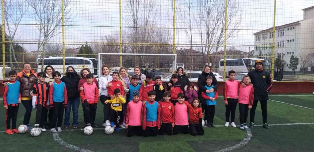 8 Mart Dünya Kadınlar Günü nedeniyle düzenlenen etkinlikte renkli görüntüler oluştu. Eskişehir Altyapı Derneği 2012 doğumlu futbol takımı oyuncuları kaleye geçti, anneleri penaltı atışı yaptı. Program sonrasında aileler hatıra fotoğrafı çektirdi.