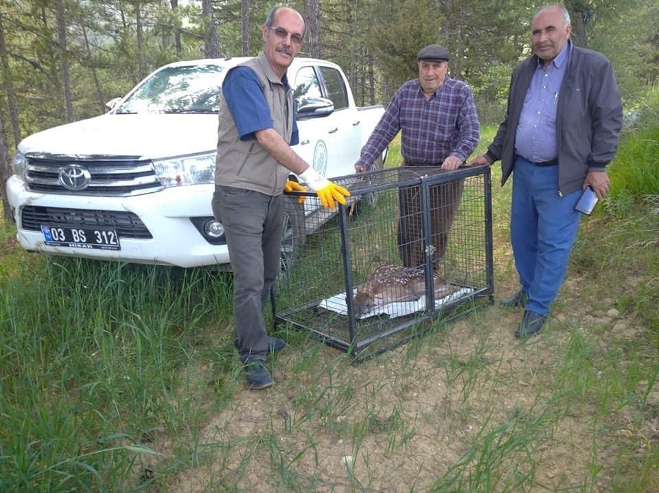 Yavru kızıl geyiğin doğada yalnız kaldığını fark eden vatandaşlar Doğa Koruma ve Milli Parklar Afyonkarahisar Şube Müdürlüğüne haber verdi. Bölgeye gelen ekipler yavru kızıl geyiği alarak Afyon Kocatepe Üniversitesi Yaban Hayatını Kurtarma Rehabilitasyon Eğitim Uygulama ve Araştırma Merkezi’e (AKÜREM) teslim etti. Öte yandan Doğa Koruma ve Milli Parklar Afyonkarahisar Şube Müdürlüğü sosyal medya hesabından şu açıklamaya yer verildi: “Doğada yavru gördüğünüz taktirde dokunmayalım ailesi mutlaka yakınlardadır. Gözlem yapalım eğer sonuç alınmazsa yetkililere bilgi verelim. Duyarli vatandaşlara teşekkür ederiz.”
