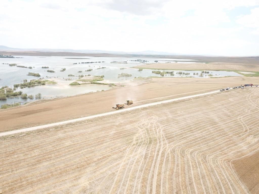 Cumhurbaşkanı Recep Tayyip Erdoğan’ın “Ekilmedik tek karış tarım arazisi kalmasın” talimatları doğrultusunda, DSİ Genel Müdürlüğü adına kayıtlı taşınmazların tarımsal ürün çeşitliliğini geliştirmek amacıyla, 5018 Sayılı Kanun ve ilgili Cumhurbaşkanlığı Genelgesi gereği; DSİ 3. Bölge Müdürlüğünce Beylikova Belediye Başkanlığına tahsis edilen 4 bin dekar arazide, 2022 yılının ilk hasadı yapıldı. Hasada Beylikova Kaymakamı Mehmet Ali Atak, Bölge Müdürü Kağan Şan, Eskişehir İl Tarım ve Orman Müdürü Ender Muhammed Gümüş, Beylikova Belediye Başkanı Özkan Alp, Bölge Müdür Yardımcısı Mükerrem Öğüt, ilgili kurum personelleri ve çiftçiler katıldı.