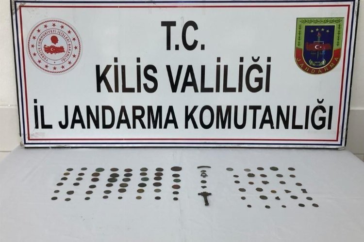 Kilis İl Jandarma Komutanlığı ekiplerince yapılan çalışmalar neticesinde 1 araç içerisinde tarihi eser niteliği taşıyan 84 adet sikke, ele geçirildi.