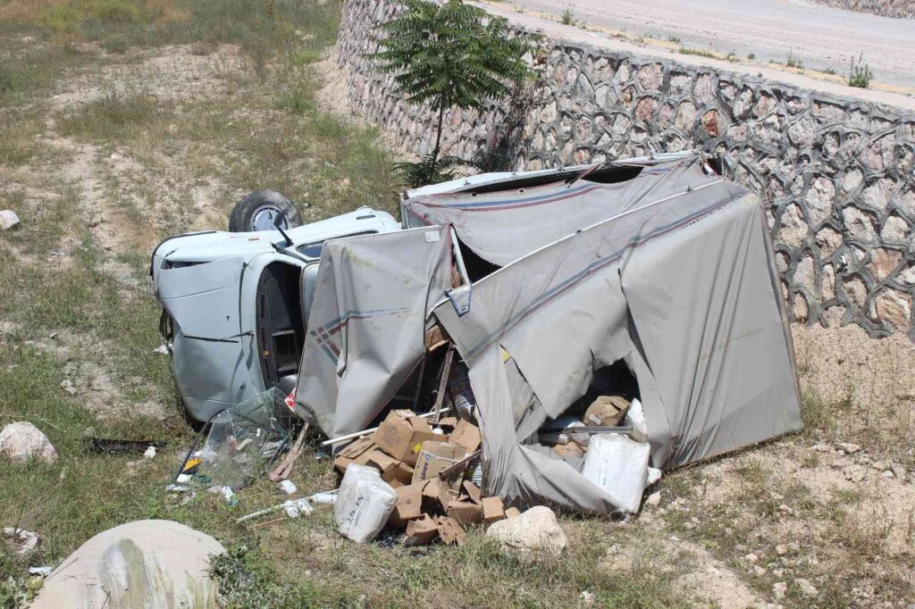Şarampole devrilen kamyonetin sürücüsü kazadan yara almadan kurtuldu