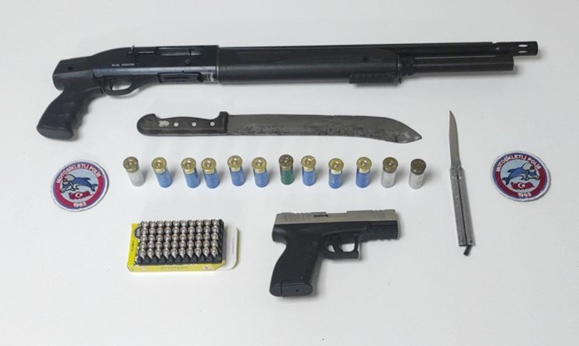 Eskişehir’de polis ekiplerince gerçekleştirilen suç önleme faaliyetleri çerçevesinde, durumundan şüphelenilen şahıslar ve araçlar üzerinde yapılan aramalarda; 5 ruhsatsız tabanca, 1 pompalı tüfek, 2 kurusıkı tabanca, 32 fişek, 12 pompalı tüfek kartuşu, 50 kurusıkı fişek, 1 pala, 1 sallama ve 1 kelebek olarak tabir edilen kesici aletler geçirildi.