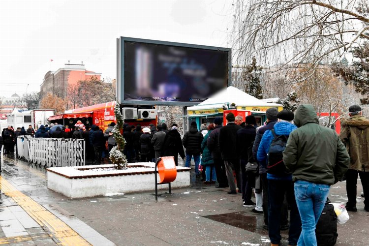 Ankara Halk Ekmek Fabrikası’nın Ramazan ayı sonuna kadar 25 ilçeyi gezerek Ankaralıları uygun fiyatlı etle buluşturacağı ‘Başkent Mobil Market’ uygulamasının ilk durağı olan Sıhhiye’de vatandaşların ilgisi yoğun oldu.