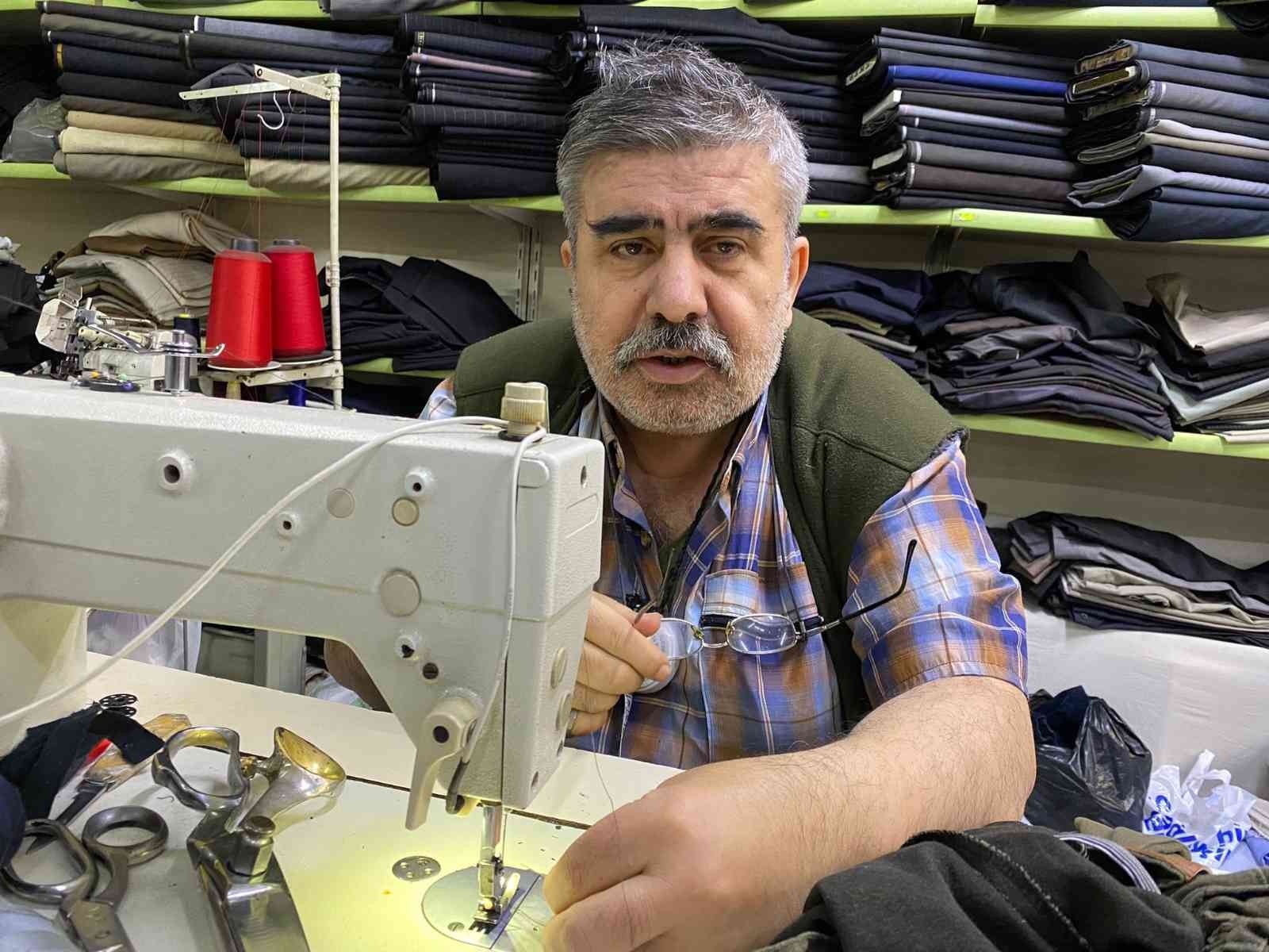 “Eskiye göre sadece takım elbise diktiren kişi sayısı çok azaldı. İnsanların eli hemen hazır giyime gidiyor. Fakat biz yine de sipariş üzerine geleni boş çevirmemeye gayret ediyoruz. Müşterinin bedenini ölçüyoruz ve tahmini bir gün içerisinde teslim ediyoruz. Takım elbisenin fiyatını ise kumaşın kalitesi belirliyor. Ne yaparsak yapalım terzilik işi, büyük mağazaların altında kalmaya devam ediyor. Çünkü mağazaya gidip bedenini söylüyorsun ve karşına onlarca alternatif çıkartıyorlar.”