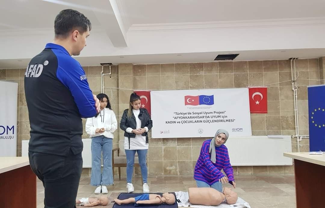 AFAD ekipleri ilk yardım eğitimlerine devam ediyor. Kentte ‘Uyum İçin Kadın ve Çocukların Güçlendirilmesi Projesi’ çerçevesinde AFAD İlkyardım Birimi tarafından SAHRA Derneği üyelerine ilkyardım eğitimi verildi. 2 gün süren eğitimde kalp masajı, suni solunum, kanamalar gibi önemli dersler uygulamalı olarak aktarıldı.