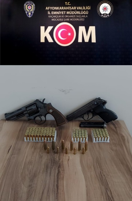 Afyonkarahisar İl Emniyet Müdürlüğü Kaçakçılık ve Organize Suçlarla Mücadele Şube Müdürlüğünce, ‘Kültür ve Tabiat Varlıklarına Muhalefet’ suçuyla mücadele kapsamında, tarihi eser olduğu değerlendirilen Sandıklı ilçesinde bulunan bir ikamette arama yapıldı. Yapılan aramalar sonucunda evde; 2 adet tabanca, 111 adet fişek, 1 adet şarjör ele geçirildi.