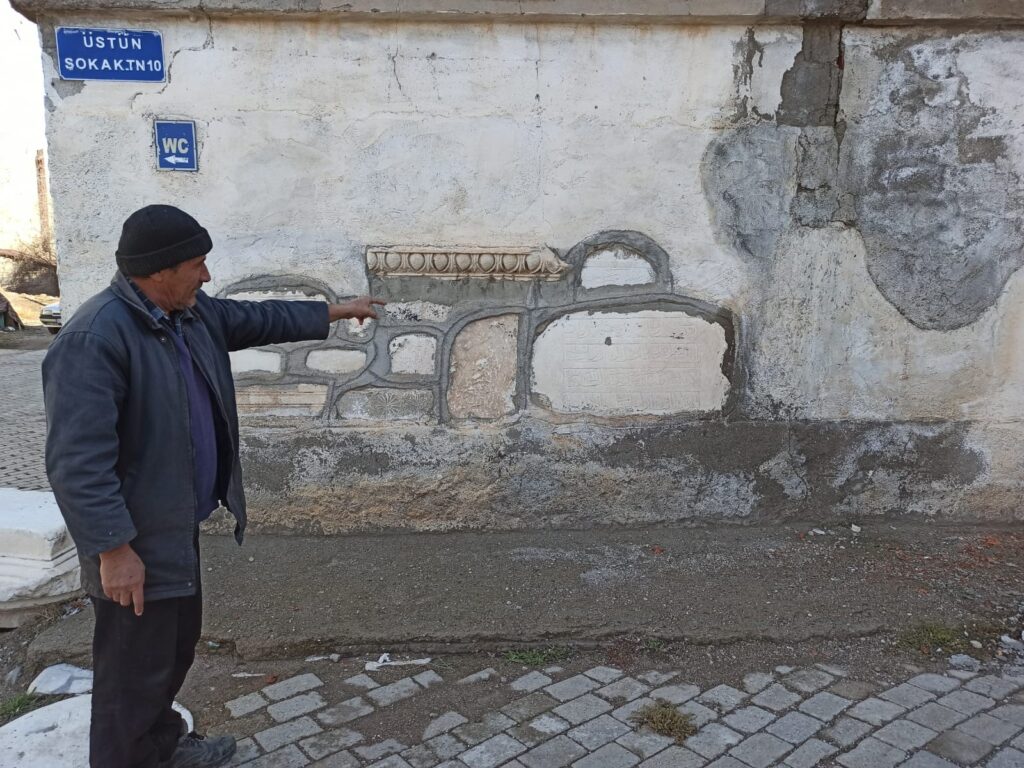 Afyon’da binlerce yıllık tarihin üzerine ev yaptılar… Afyon’un Şuhut ilçesinde Roma dönemi duvar ve Osmanlı döneminden kalma çeşmenin üzerine yaklaşık 60 yıl önce yapılan ev görenleri şaşkına çeviriyor. Evin duvarının örüldüğü tarihi sütunların üzerinde Osmanlıca ve Grekçe yazılı yazıtlarla, motifler ise çıplak gözle görülebiliyor.