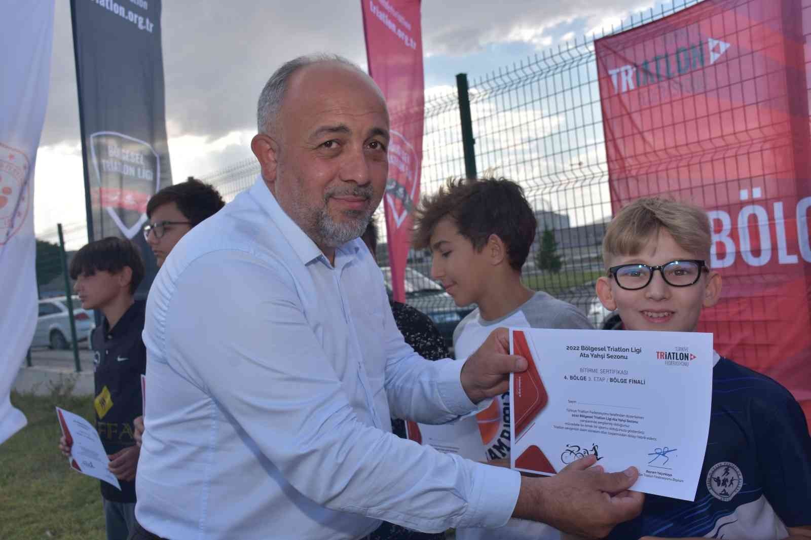 TÜRKİYE TRİATLON FEDERASYONU FAALİYET PROGRAMINDA BULUNAN VE AFYONKARAHİSAR’DA İLK KEZ DÜZENLENEN AKUATLON BÖLGESEL FİNAL MÜSABAKALARI 5 İLDEN 50 SPORCUNUN KATILIMIYLA BİRLİKTE KOCATEPE SPOR KOMPLEKSİNDE SONA ERDİ. KARŞILAŞMALAR NETİCESİNDE DERECEYE GİRENLERE GENÇLİK VE SPOR İL MÜDÜRÜ KASAPOĞLU SERTİFİKA TAKDİM ETTİ.