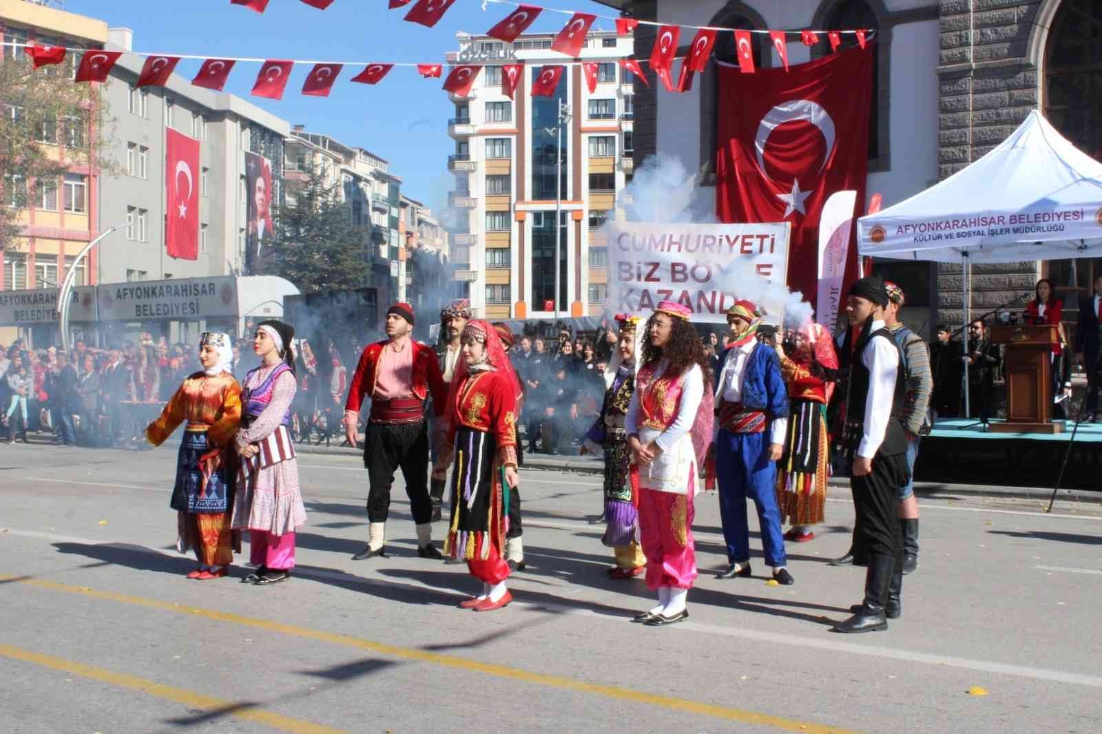 Cumhuriyet Bayramı Afyonkarahisar’da coşku içerisinde kutlandı. Kentte kutlamaların adresi Zafer Meydanı oldu. Bayram programı Vali Kübra Güran Yiğitbaşı’nın vatandaşların bayramını kutlaması ile başladı. Şiirlerin okunduğu, halk oyunları ve müzik dinletisi gösterisi sonrası mehteran takımı ve bando gösterisi yapıldı. Halk oyunlarının gösterisinin ardından öğrencilerin açtıkları ‘Cumhuriyeti Biz Böyle Kazandık’ pankartı büyük alkış aldı.