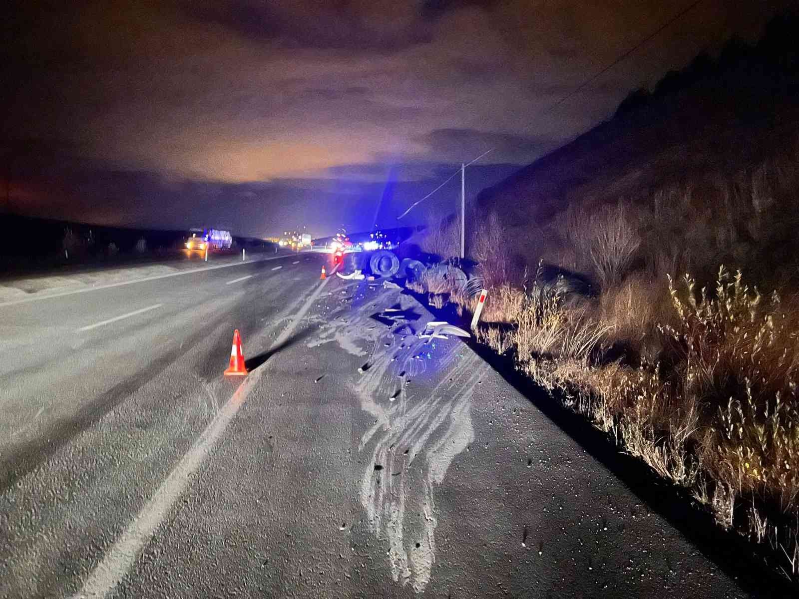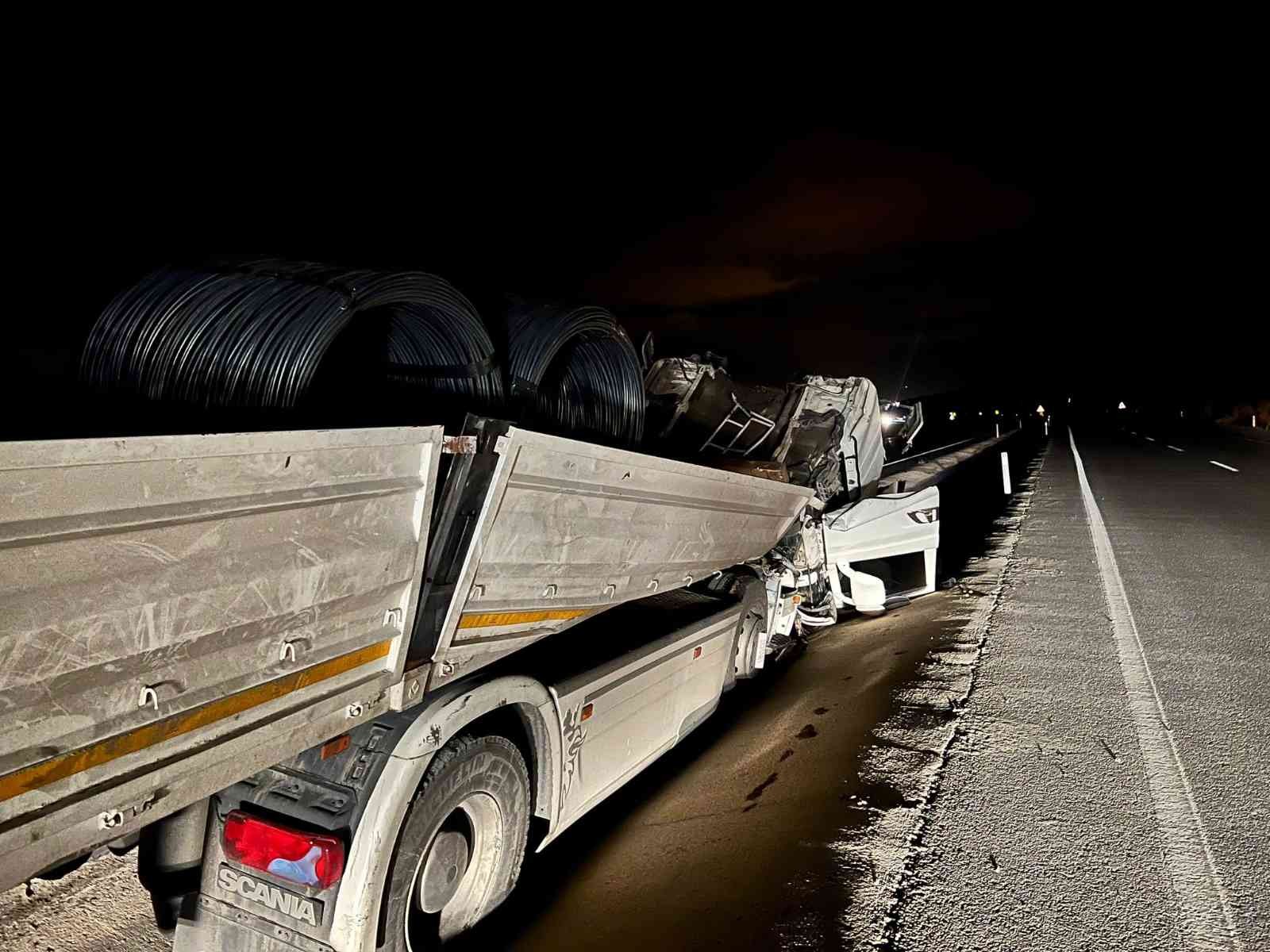 Kaza dün gece Emirdağ-Bolvadin karayolu üzerinde meydana geldi. Edinilen bilgilere göre, 42 ATA 050 plakalı tır ile rulo halinde demir taşıyan A.K., Bolvadin ilçesinde trafikte ilerlerken ani fren yaptı. Sarsıntının etkisi ile dorseden fırlayan demirler tırın kupasını çarparak parçaladı. Çarpmanın etkisi ile kupa yerinden sökülüp yola düştü. Kazanın ardından çevredekilerin yardımıyla bölgeye 112 Acil Servis ve jandarma ekibi sevk edildi. Bölgeye gelen sağlık ekipleri yaralanan ve kendi imkanları ile kupadan çıkmayı başaran sürücüyü ambulans ile hastaneye kaldırdı. Kaza sonrası bir kısmı yola savrulan demirler ise olay yerine gelen vinç ile yol kenarına alındı.
