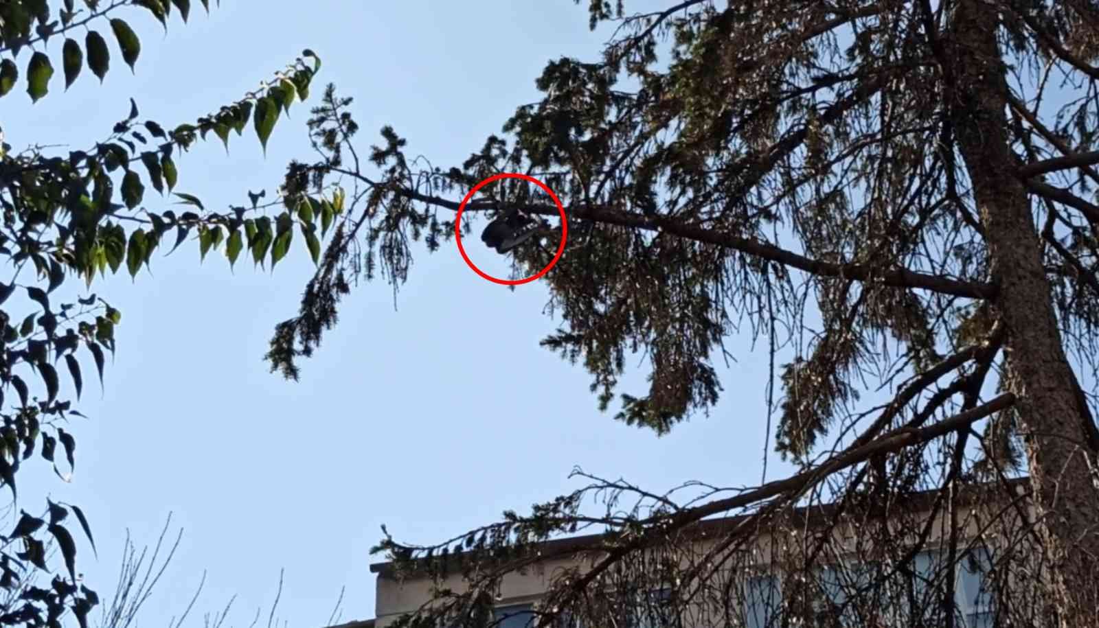 ESKİŞEHİR’DE AYAĞINDAKİ İPİN AĞACA DOLAŞMASI SONUCUNDA BAŞ AŞAĞI MAHSUR KALAN GÜVERCİN, İTFAİYE EKİPLERİ TARAFINDAN KURTARILDI.