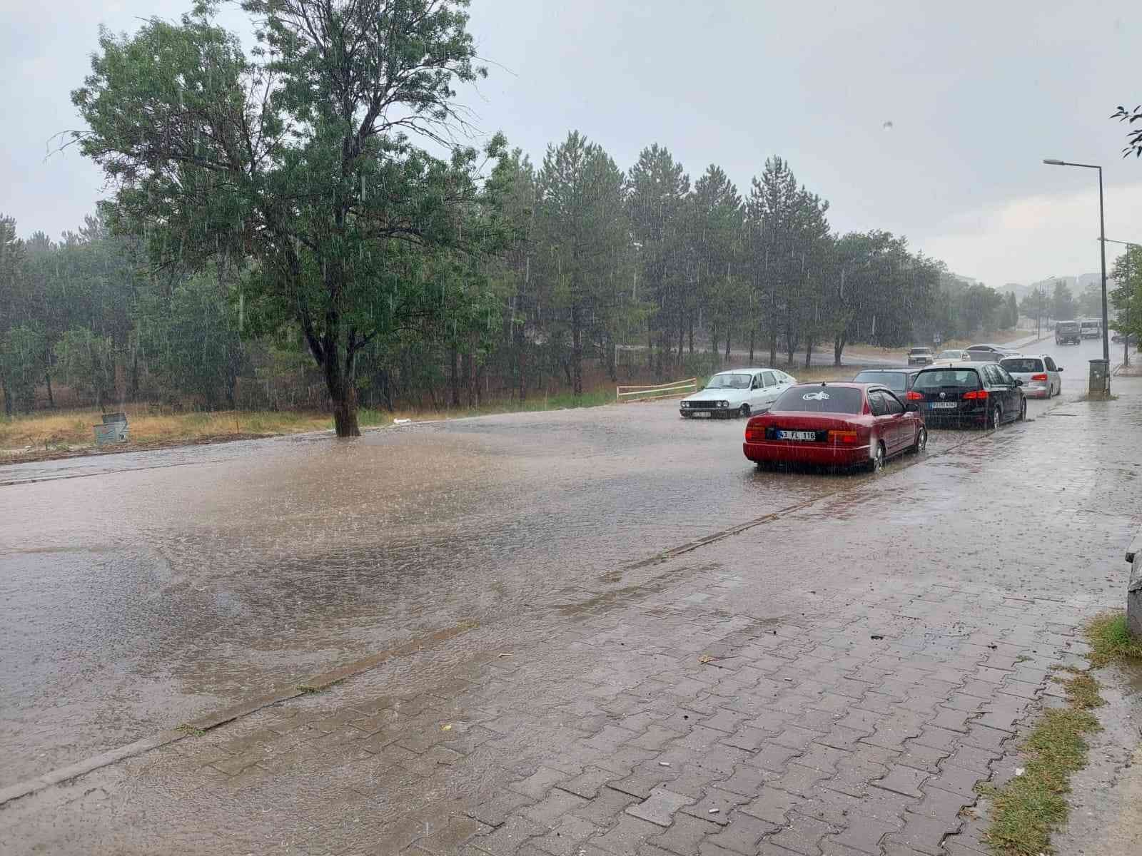 Kütahya’nın Gediz ilçesinde etkili olan şiddetli yağış sonrası araçlar sel sularında mahsur kaldı.