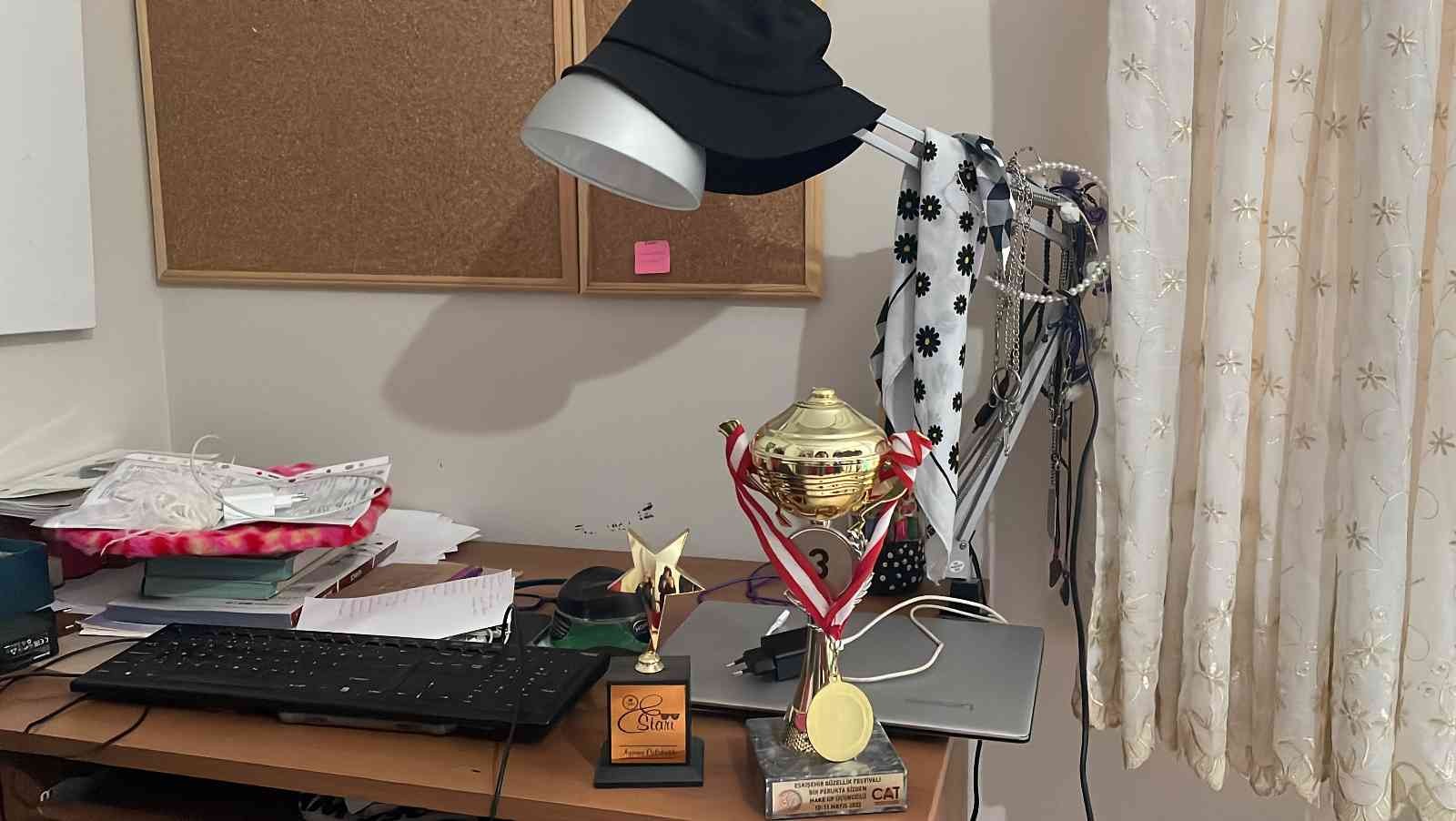 Genç yaşta cinayete kurban giden Ayşenur Çolakoğlu’dan geriye ise çalışma masasının üzerinde kupaları ve takıları ile şapkası kaldı. Evlerine taziye için gelen arkadaşları ise genç kızın odasında oturuyor. Çolakoğlu’nun ‘saç tasarım’ yarışmasında 3’üncü olduğu ve ödül aldığı görüntüleri ise yürekleri dağladı.