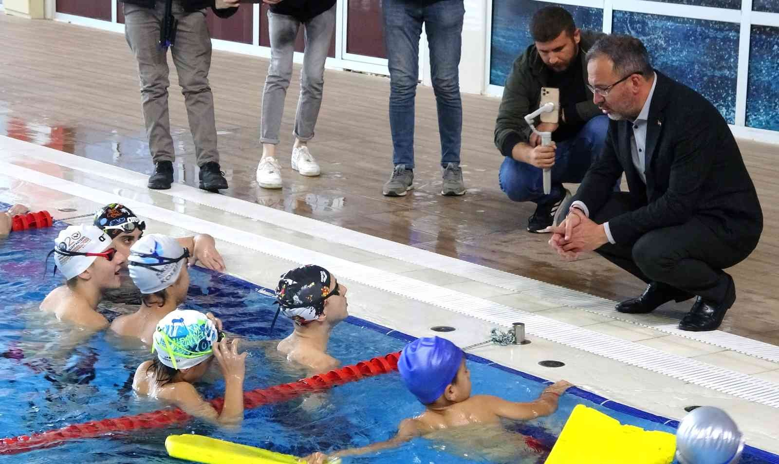 Bakan Kasapoğlu, şehir stadı arazinin yakında yer alan Kütahya Akkent Kapalı Yüzme Havuzu’nu da ziyaret ederek, burada antrenman yapan sporcularla bir süre sohbet etti.
