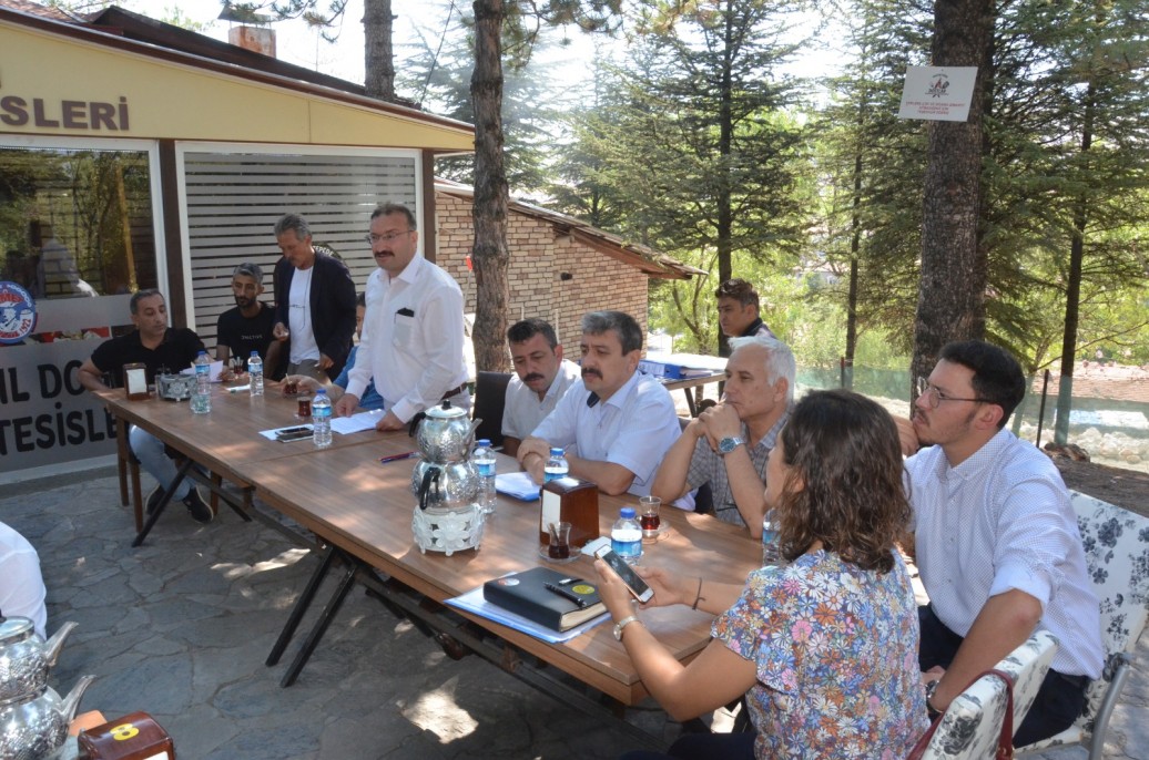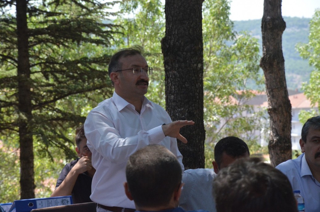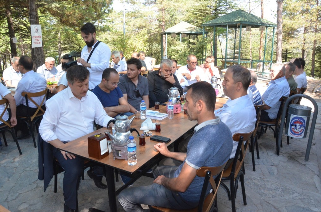 Aşıklar Tepesindeki kazı çalışmaları için kamuoyunda yapılan ve başkanlarca sorulan soruları da cevaplayan Başkan Doğan” Bu alana, bin 500’lük Emet’in en büyük deposu yapılıyor. Burada onlarca kamera var. Yerin altında hazine aramıyoruz. Evet, Hüseyin Doğan olarak bizler hazine bulduk. İlçemizin modern alt yapısını değiştirmek için hazine bulduk. Ama yerin altından değil, bilakis yerin üstünde bizler için hazinelerden daha değerli hükümetimiz sayesinde ilçemize kaynaklar yaratarak hazine bulduk. Ülkemizin gözbebeği Eti Maden İşletmelerimizden alt yapıya destek için 50 milyon TL değerinde hazine bulduk. Yapılan alt yapı çalışmalarında arıtma tesisi için Cumhurbaşkanımız Recep Tayyip Erdoğan vasıtası ile 20 milyon TL hazine bulduk. Emet Belediyesi olarak kamunun haklarını savunmaya, Emet halkımızın geleceğini modernize etme adına her türlü eleştiriye rağmen daha da azim ve şevkle çalışmaya devam edeceğiz. Sizlerden dua ve desteklerinizi bekliyoruz. Bizlerin hedefi hakkın ve halkımızın rızasını kazanmaktır. Makam ve para peşinde olsaydık, bugün bu alt yapıya da girmez, her tarafı akan delik deşik içme suyu hattına oradan buradan su kaynakları bulup depolara doldurmakla günleri geçiştirirdik. Bir kaç senedir halkımıza söylediğimiz gibi, birlikte bunalacağız, birlikte üzüleceğiz. Ama Allah’ın izniyle bu işleri en kısa sürede bitirerek hem kendimiz hem de çocuklarımız, torunlarımız için sağlıklı modern içme suyu yanı sıra, yemyeşil üst yapıları da yapılmış ışıl ışıl bir Emet birlikte ulaşacağız. Başkanlarımıza kafalarına takılan her konuda her zaman kapılarımızın açık olduğunu, gelip bizlerden bilgi alabileceklerini belirtir, katılımlarınız için hepiniz teşekkür ederim” diye konuştu.