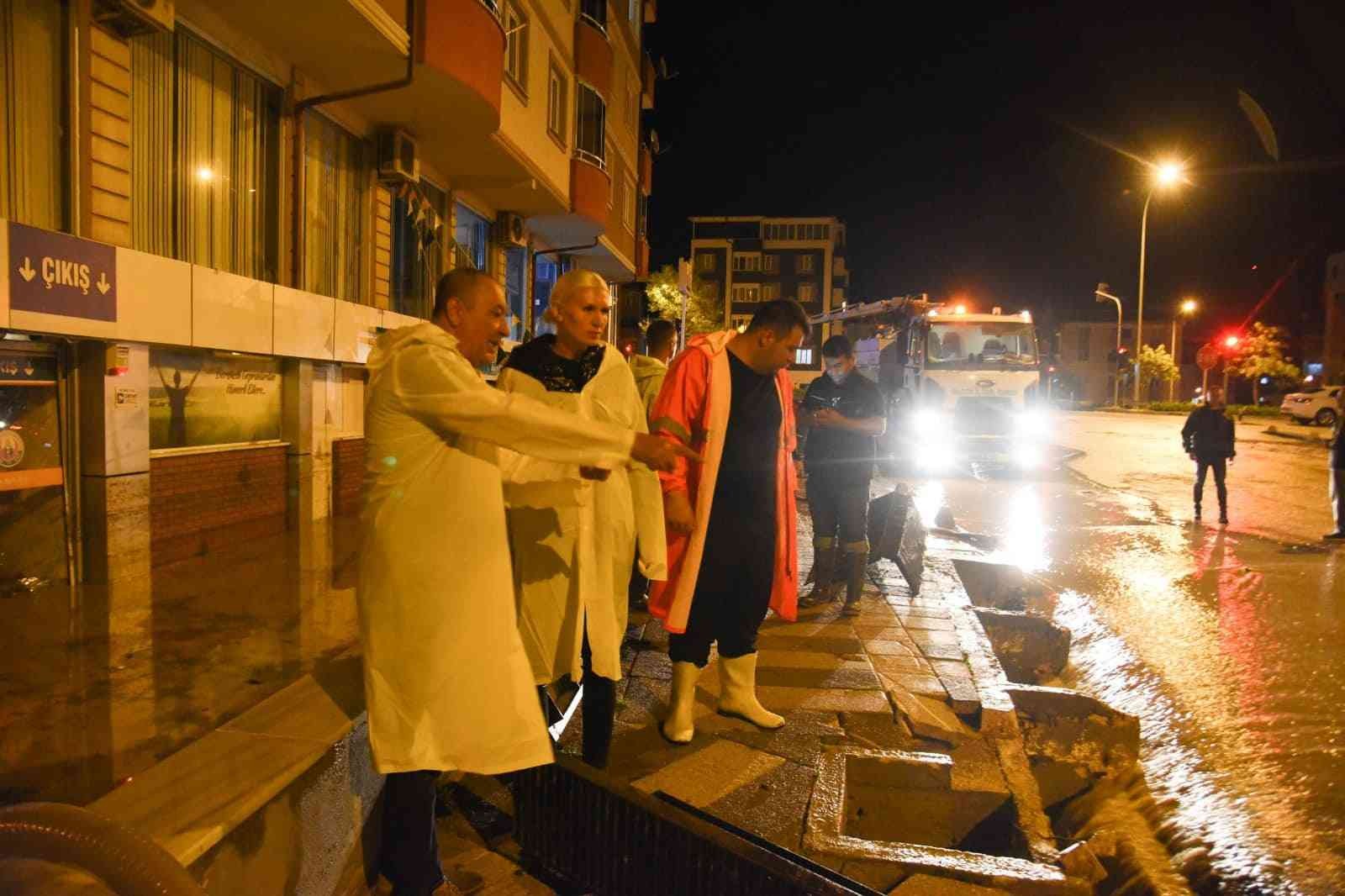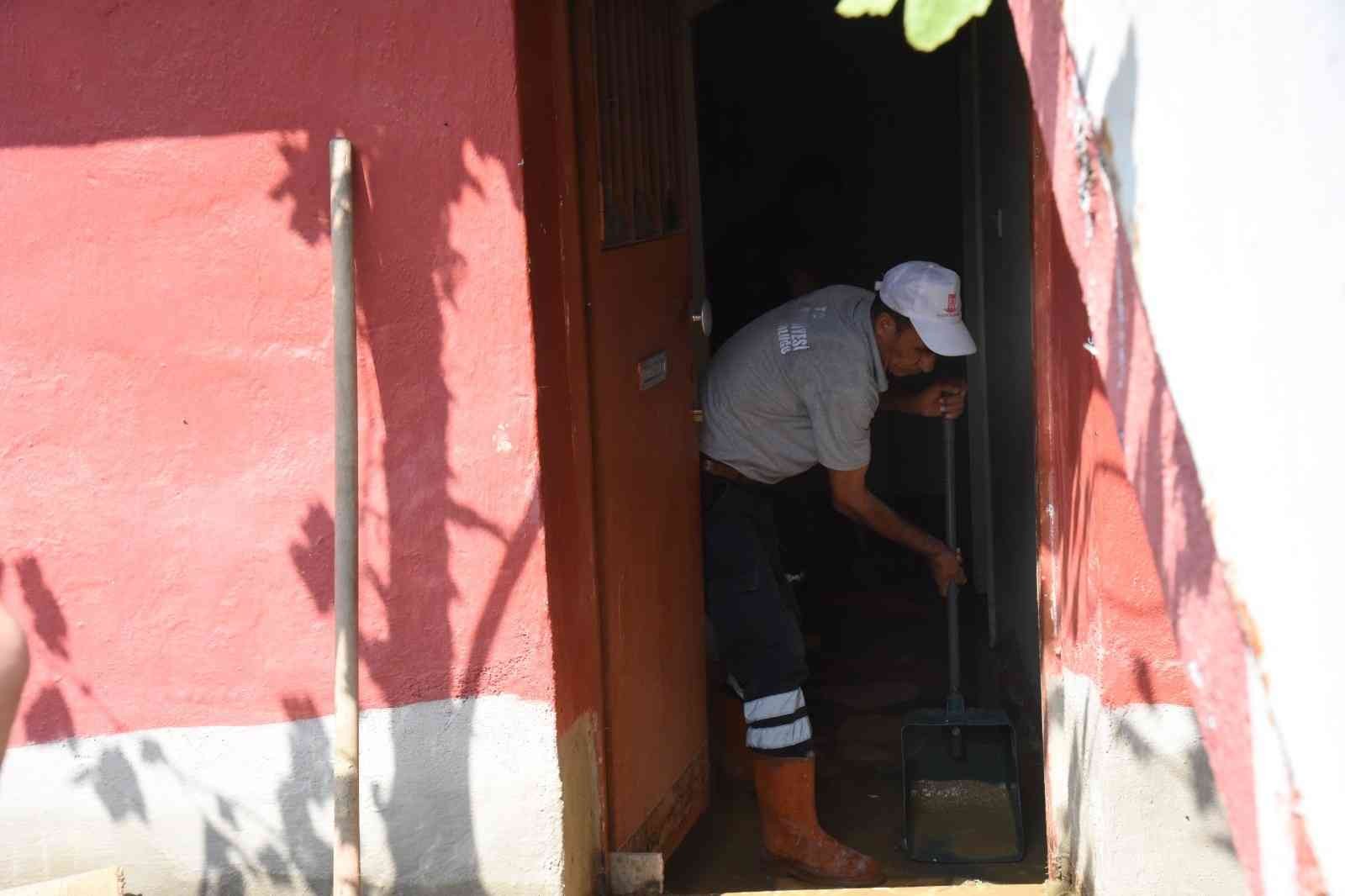 Burada iş yeri olan koşularına yardım eden Mustafa Filoğlu, “Akşamki selde hemen hemen 30 santim kadar su girdi içerideki dükkanlara. Burada komşu olarak yardımcı olduk çerideki suyu boşaltmak için. İçerideki zararı ziyanı kim ödeyecek. Bunun bir açıklaması olması lazım yetkililerden. Duyarlı olmaları lazım, buradaki halkın, esnafın hali ne olacak. Sadece biz değil burada, kaç esnaf perişan. Akşam 8’den 1’e kadar su temizledik” dedi.