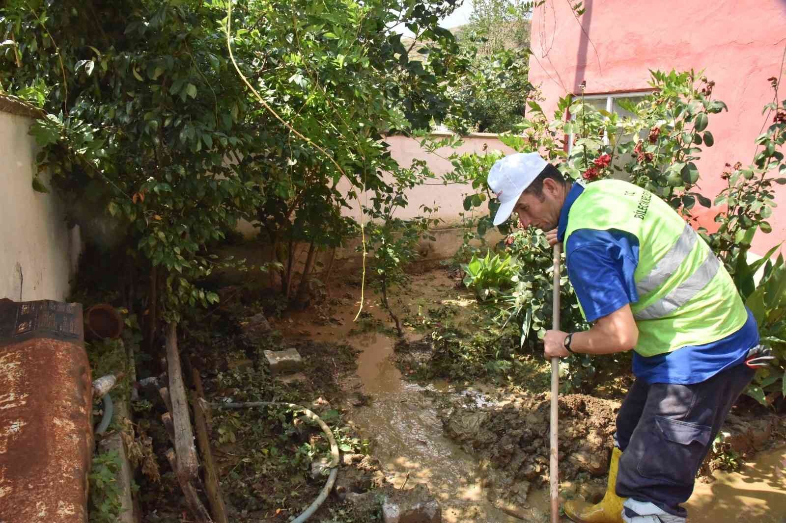 Bilecik’te dün gece aniden bastıran, ağaçların devrilmesi, birçok işyeri ve evin sular altında kalması ve yolların ikiye bölünmesine sebep olan afet sonrası yaralar sarılmaya başlandı.