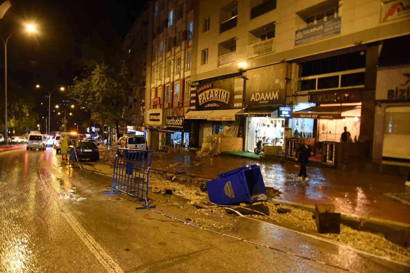 Afet ve Acil Durum Yönetim Başkanlığından (AFAD) Bilecik’in de içinde bulunduğu 11 il için kuvvetli ve gök gürültülü sağanak yağış uyarısı dün yapmıştı. ‘Sarı Kod’ ile uyarılan Bilecik’te dün akşam saatlerinde başlayan kuvvetli yağış adeta hayatı felç etti. Başta Şeyh Edebali Kültür ve Kongre Merkezi Kavşağı’nda bulunan Tarım Kredi Kooperatifi Marketi’nin su basarken, araçlar yollarda mahsur kaldı. Elektriğin de kesildiği kent merkezi karanlığa bürünürken, kuvvetli rüzgâr ağaçları devirdi. Çınarlar mevkiindeki dükkânları da su basarken, Akasya mevkiinde bir çok araç yağmur sularının birikmesi nedeniyle mahsur kaldı. Yaşanan afette bir çok ev, işyeri, dükkan hasar görürken, evine su basan ve temizlik esnasında ayağı kayan bir şahsın yaralanmasından başka olumsuz bir olay yaşanmadı.