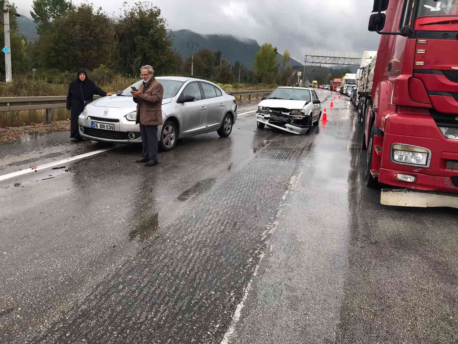 Alınan bilgilere göre; Bilecik-Bozüyük D650 karayolunda seyir halinde bulunan 64 DV 184 plakalı otomobilin sürücüsü A.C., Pazaryeri Kavşağına geldiğinde kırmızı ışıkta beklemeye başladı. Bu araca aynı istikamette seyir halinde bulunan Ş.A. idaresindeki 81 ABG 077 plakalı otomobil duramayarak arkadan çarptı.