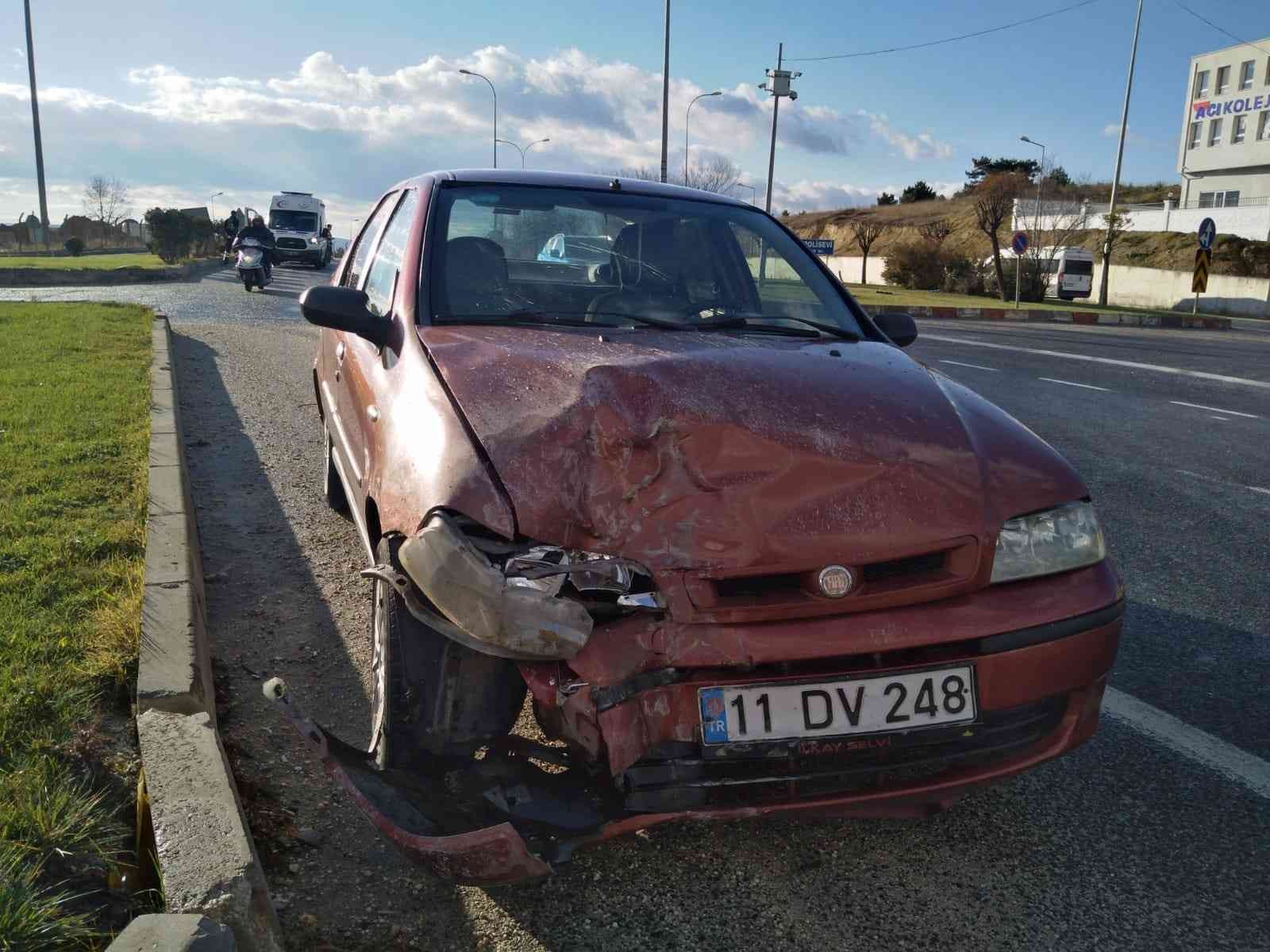Alınan bilgiye göre, Bilecik kent merkezinden üniversite istikametine seyir halindeki İlkay Sevk idaresindeki 11 DV 248 plakalı otomobil 1. OSB Kavşağına geldiğinden kavşaktan dönüş yapan Ayhan Kenar idaresindeki 34 HT 2834 plaka tır ile çarpıştı. Kazada otomobil içinde yolcu olarak bulunan Doğukan Danacı (21) ve Tuna Cengiz (21) yaralandı. Yaralılar olay yerine gelen 112 Acil Servis ekiplerince yapılan ilk müdahalenin ardından Bilecik Eğitim ve Araştırma Hastanesine kaldırıldı. Yaralıların sağlık durumun iyi olduğu öğrenilirken, polis kazayla ilgili inceleme başlattı.