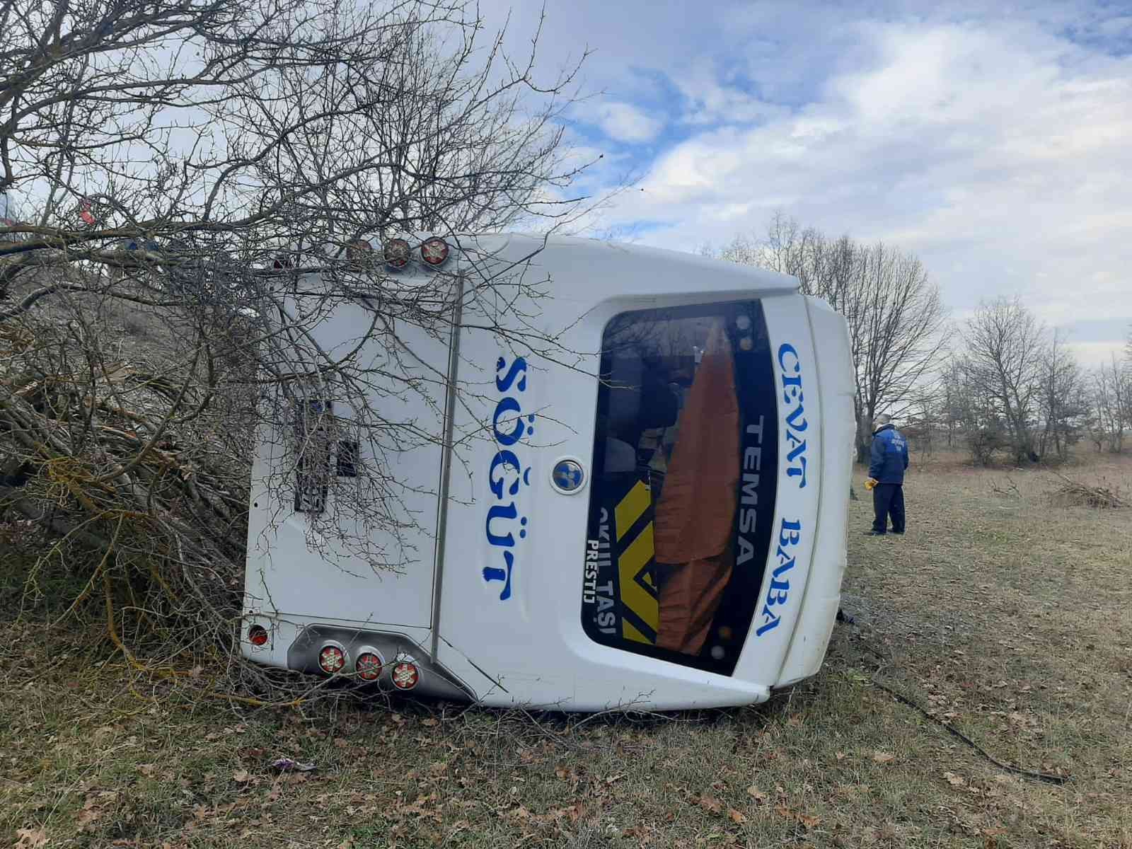 Alınan bilgilere göre, Eskişehir Şehirler Arası Otobüs Terminali’nden aldıkları yolcularla Bilecik’in Söğüt ilçesine hareket eden Mehmet Ö. idaresindeki 11 TE 997 plakalı midibüs, Gündüzbey köyü yakınlarında sürücüsünün kontrolünden çıkarak şarampole uçtu. Kazada araç içinde yolcu olarak bulunan 7 yolcu çeşitli yerlerinden yaralandı. Yaralıları olay yerine sevk edilen 112 Acil Servis ekiplerince yapılan ilk müdahalenin ardından Söğüt İlçe Devlet Hastanesine Eskişehir ve Bozüyük’e sevk edildi. Jandarma kazayla ilgili inceleme başlatırken, yaralıların sağlık durumun iyi olduğu öğrenildi.