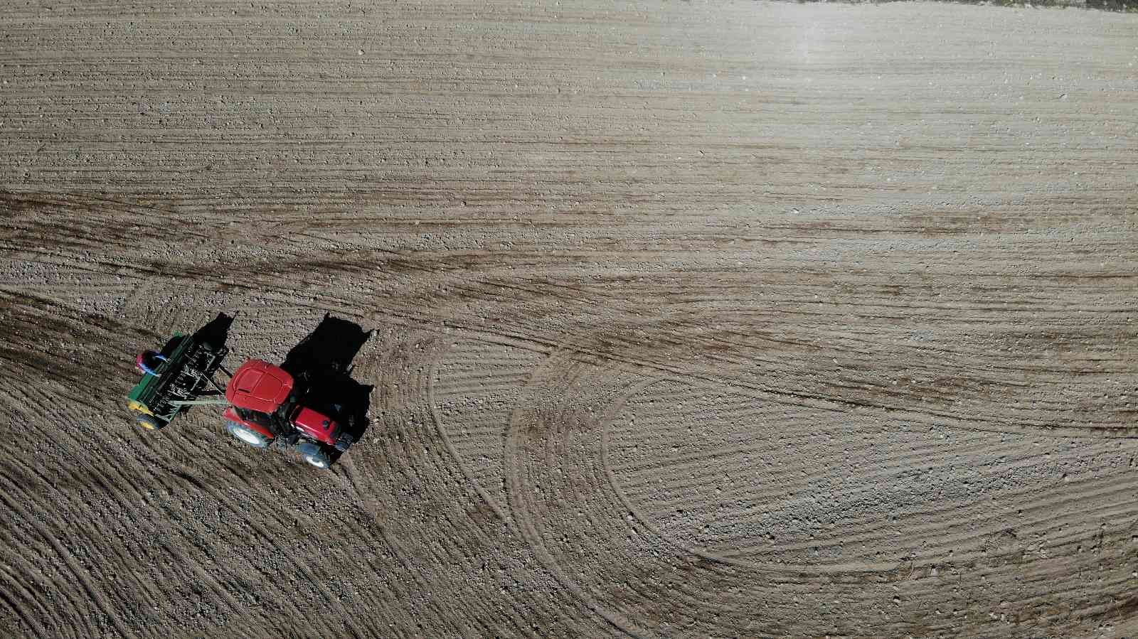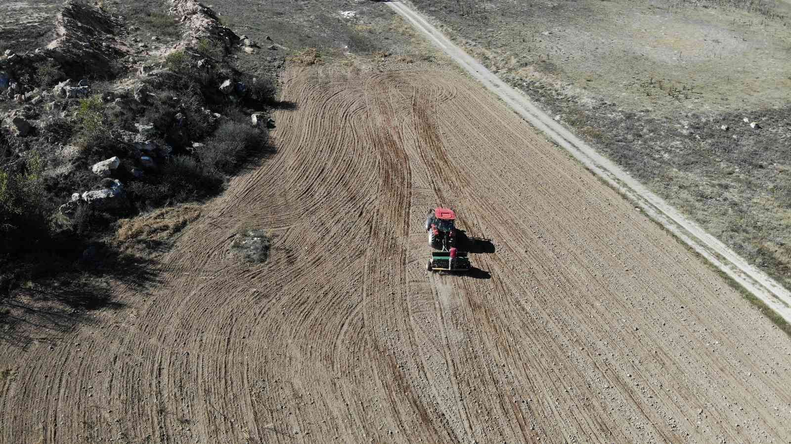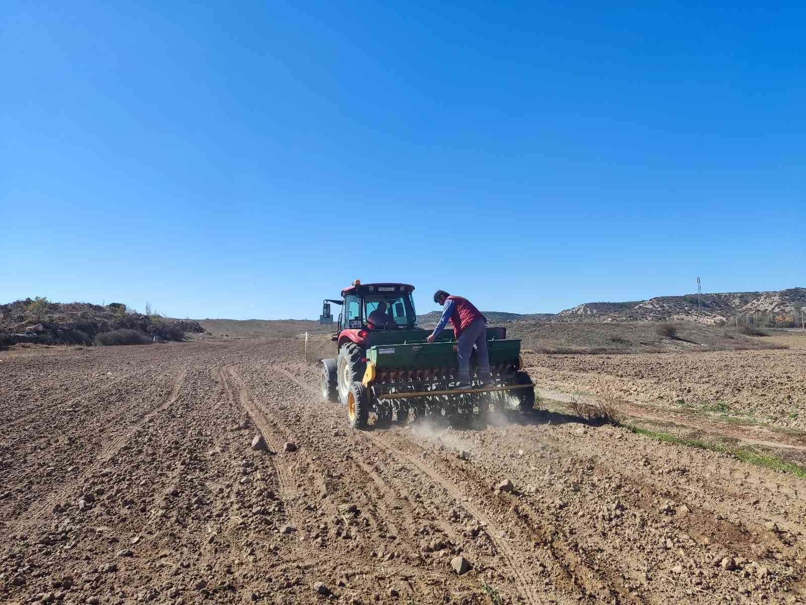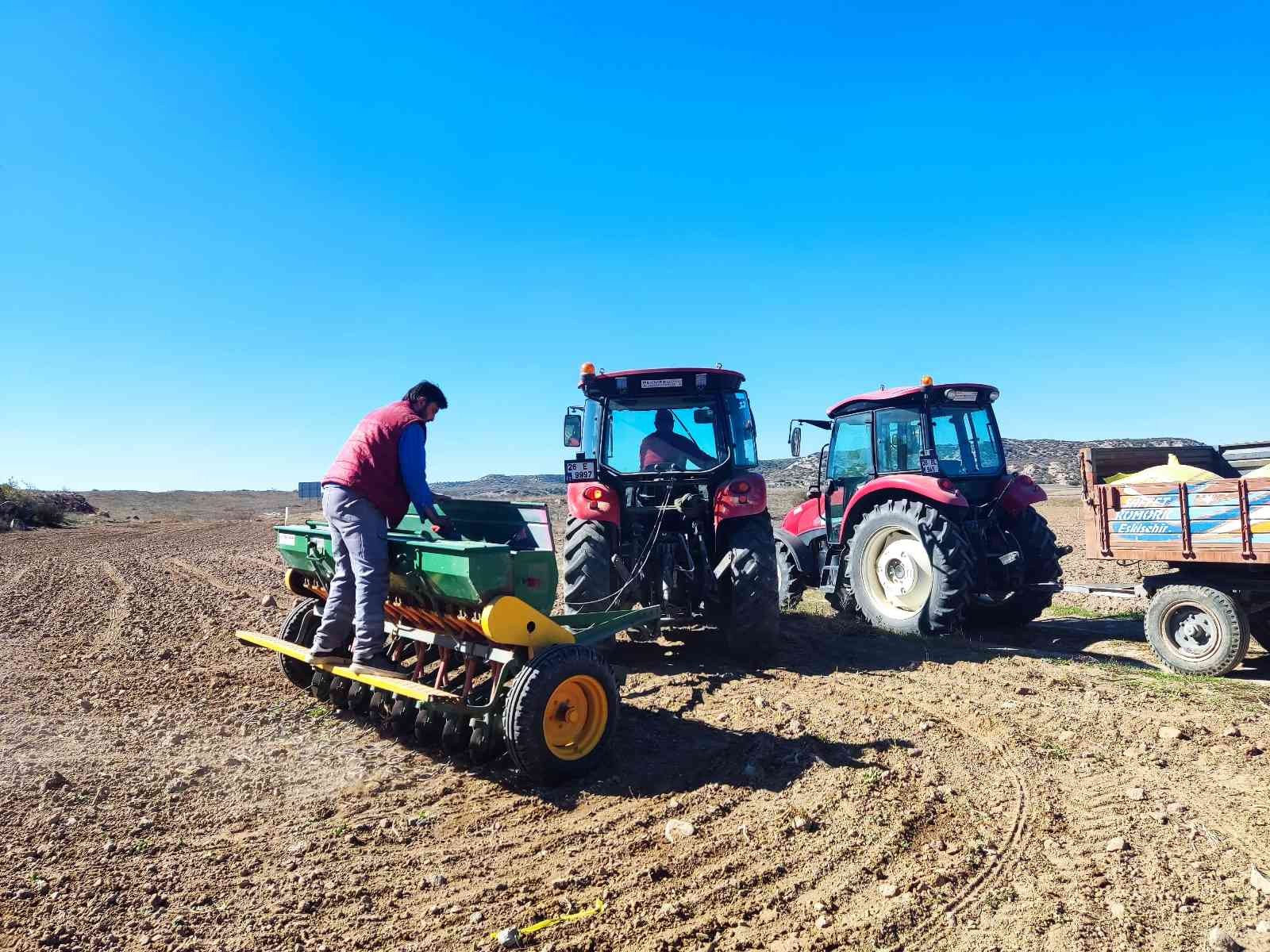 Eskişehir’in Kızılinler Mahallesi’nde bulunan tarım arazilerinde yaklaşık 8 ay sonra hasat edilecek olan buğday tohumları toprakla buluştu.