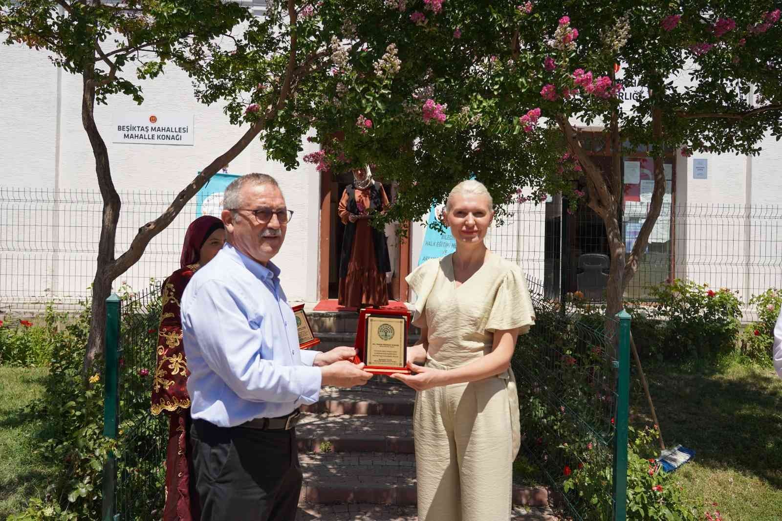 Milli Eğitim Müdürü Mustafa Akyol, Halk Eğitim Merkezi Müdürü Seyfettin Yıldız, Kent Konseyi Başkanı Seyfi Özgen, il genel ve belediye meclis üyeleriyle mahalle sakinlerinin katıldığı dikiş kursunu bitiren kursiyerlere sertifikaları verilerek, yapılan çalışmalar sergilendi.