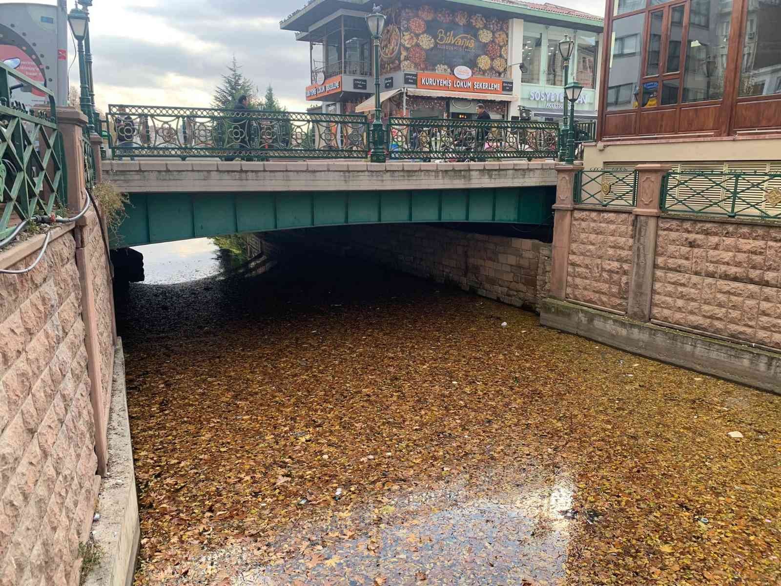 Eskişehir’in en önemli turistik değerlerinden biri olan Porsuk Çayı’nın yüzeyini kaplayan sarı yapraklar, kartpostallık sonbahar görüntüleri oluşturdu.