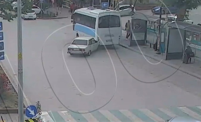 Kütahya’da drift yapan bir sürücü, durakta bekleyen halk otobüsüne çarptı. Drift ve çarpma anı saniye saniye kaydedildi.