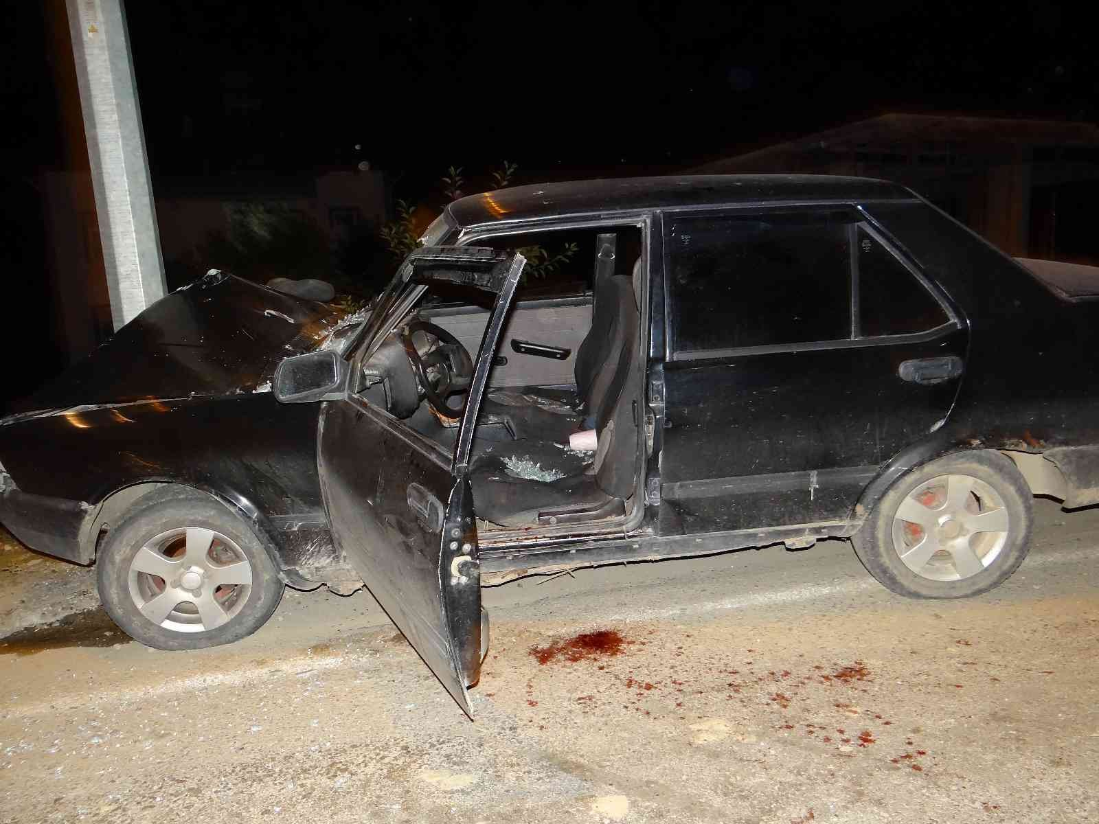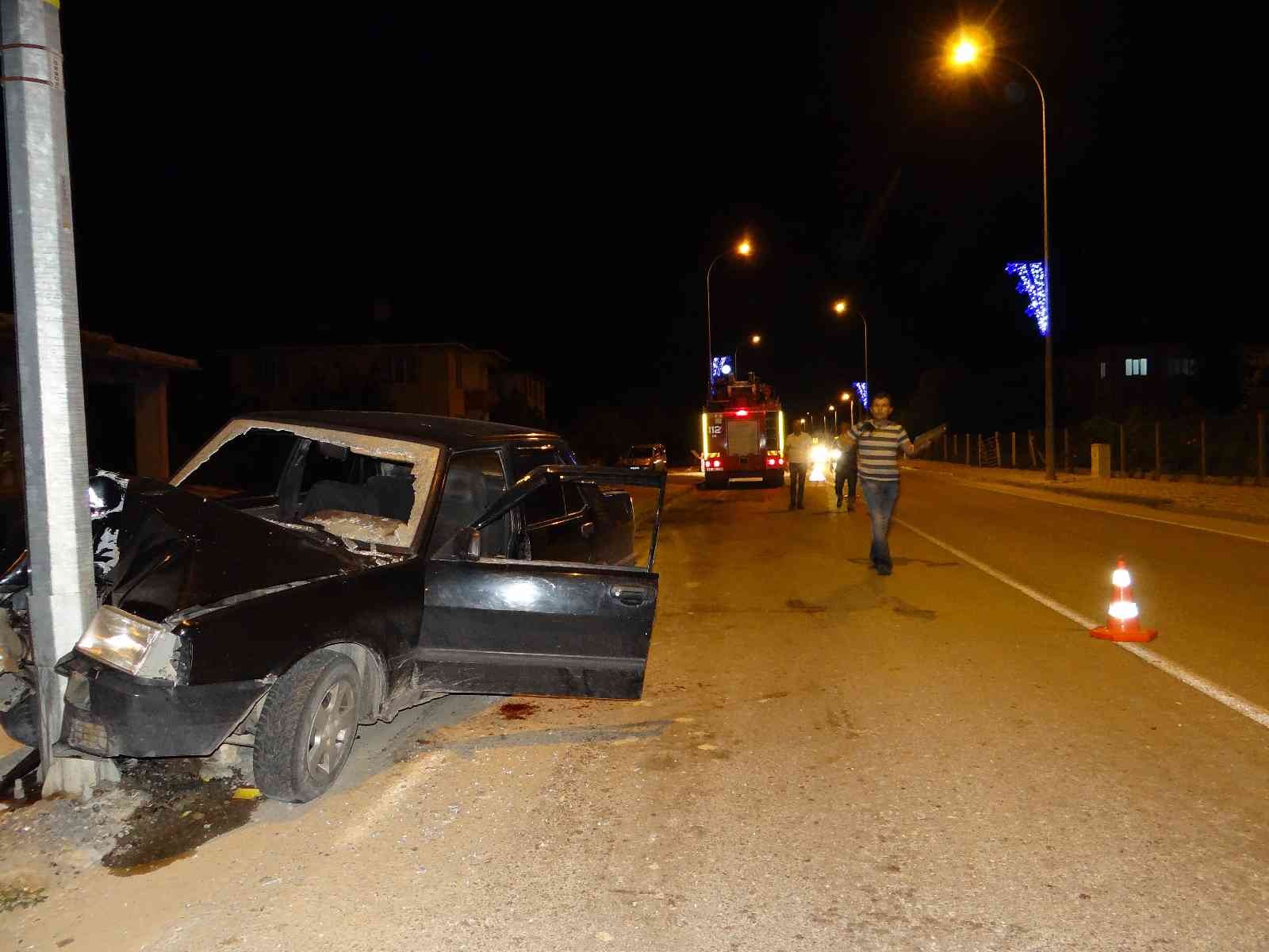 DÜMDÜZ YOLDA AYDINLATMA DİREĞİNE ÇARPTI, BABA OĞUL YARALANDI