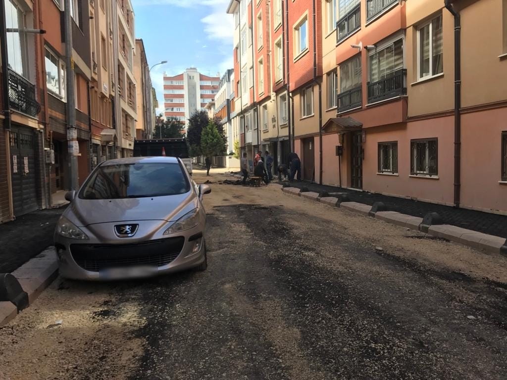 Eskişehir’in Yenibağlar Mahallesi’nde yol yapım ve kaldırım yenileme çalışmalarının yapıldığı sokaklara park edilen araçlar, görevlilerin çalışmasını engelliyor.