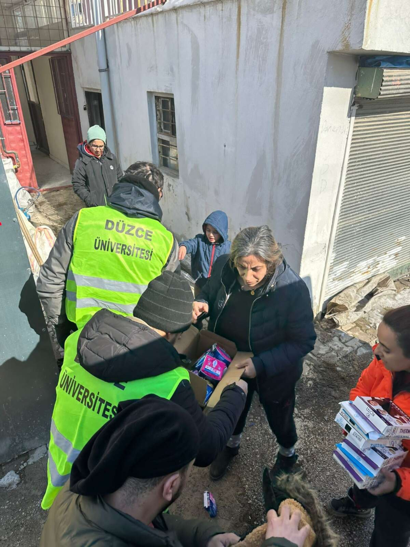 “Bir Destek de Sen Ol” yardım kampanyası başlatan ve halen devam ettiren Düzce Üniversitesi; kışlık kıyafet, battaniye, ısıtıcı, temizlik ve hijyen malzemeleri, bebek maması ile dayanıklı kuru bakliyat ürünleri başta olmak üzere iki TIR ihtiyaç malzemesi, üç TIR yakacak odun ve bir TIR suyun bölgeye ulaşmasına destek oldu. Ayrıca Düzce Üniversitesi Akçakoca Turizm İşletmeciliği ve Otelcilik Yüksek okulu, Gastronomi ve Mutfak Sanatları Bölümü, uzun süre bayatlamayan poğaça, kek ve kurabiye üreterek afet bölgesine gönderdi.