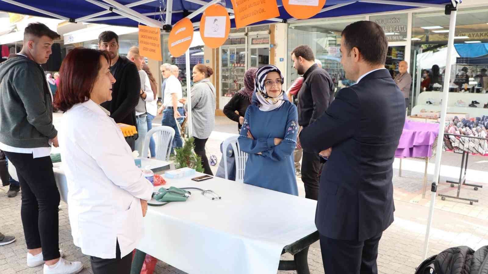 Afyonkarahisar Emirdağ İlçe Sağlık Müdürlüğü tarafından Uzun Çarşı’ya kurulan sağlık kabininin de vatandaşlara doğru beslenme ve genel sağlık taraması hizmeti veriliyor.