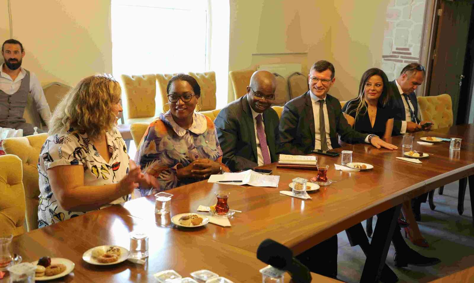 Eskişehir Tarım ve Orman İl Müdürlüğü Başak Toplantı Salonu’nda gerçekleşen görüşmede, Eskişehir Tarım ve Orman İl Müdürü Ender Muhammed Gümüş, Fildişi Sahili Cumhuriyeti Ankara Büyükelçisi Khadidjata Toure, Fildişi Sahili Cumhuriyeti Müsteşarı Assi Sannon, Eskişehir Madencilik Kümesi Yönetim Kurulu Üyesi Berna Kızılbük, Beylikova Besi Organize Sanayi Bölge Müdürü Yurdal Çetinkaya, tarım makinaları üreten firmaların yönetici ve temsilcileri ile Tarım ve Orman İl Müdürlüğü kurum amirleri katıldı.