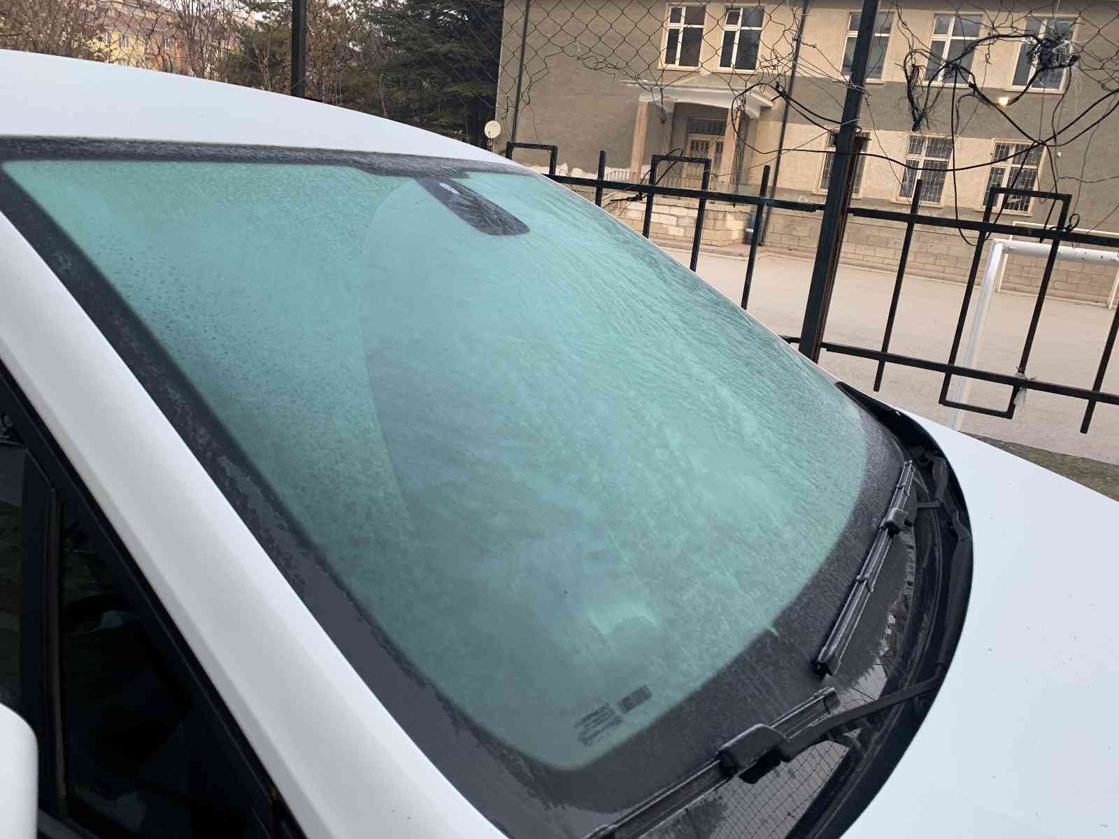 Eskişehir’de sabahın erken saatlerinde hava sıcaklığının sıfırın altına düşmesiyle birlikte etkili olan kırağı, araç camlarını ve bazı yüzeyleri dondurdu.