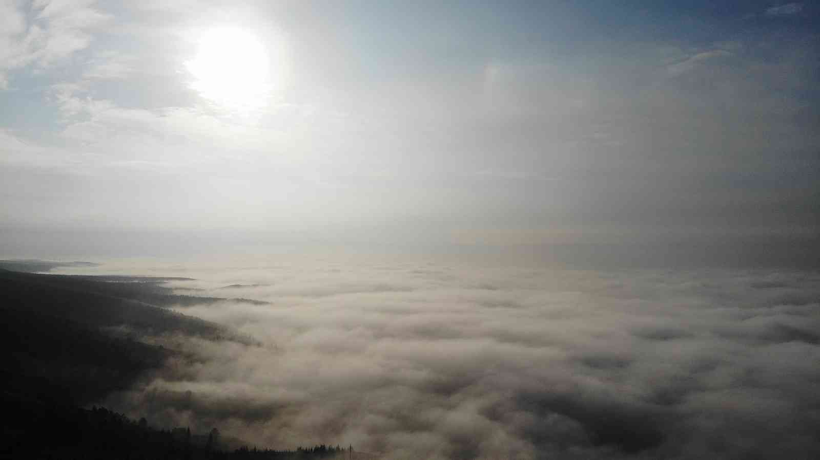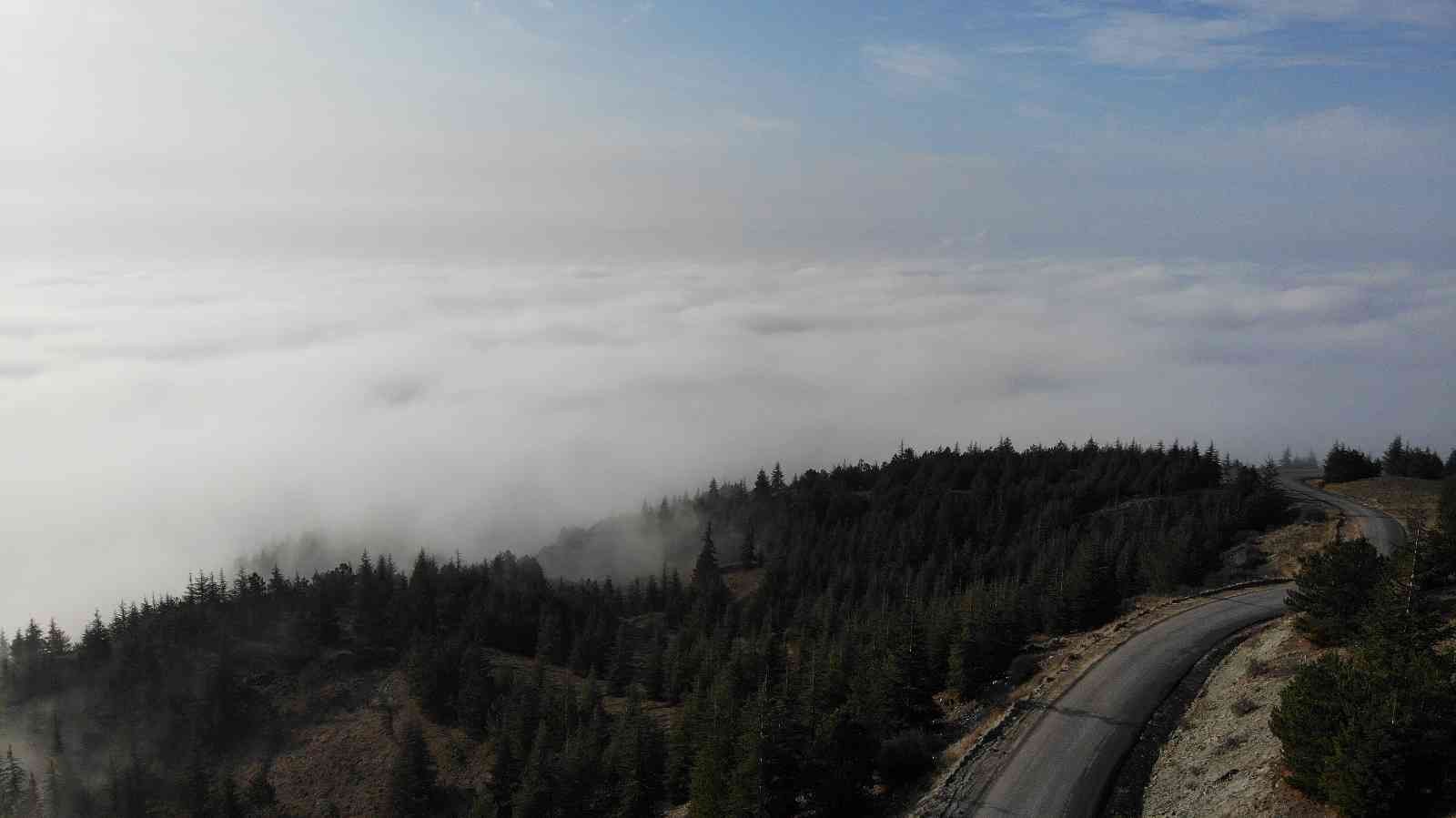 Eskişehir’de düşük hava sıcaklığı nedeniyle sabahın erken saatlerinde yoğun sis etkili oldu. Alçak kesimleri adeta battaniye gibi örten sis bulutları kartpostallık görüntüler oluşturdu. Görüş mesafesini büyük ölçüde düşüren yoğun sis, yüksek kesimlerde etkisini yitirdi. Şehrin üzerini kaplayan sis tabakası, beyaz bir denizi andıran görüntüsüyle mest etti. Karanın sis bulutlarıyla birleştiği seyrine doyumsuz manzara dron ile havadan görüntülendi.