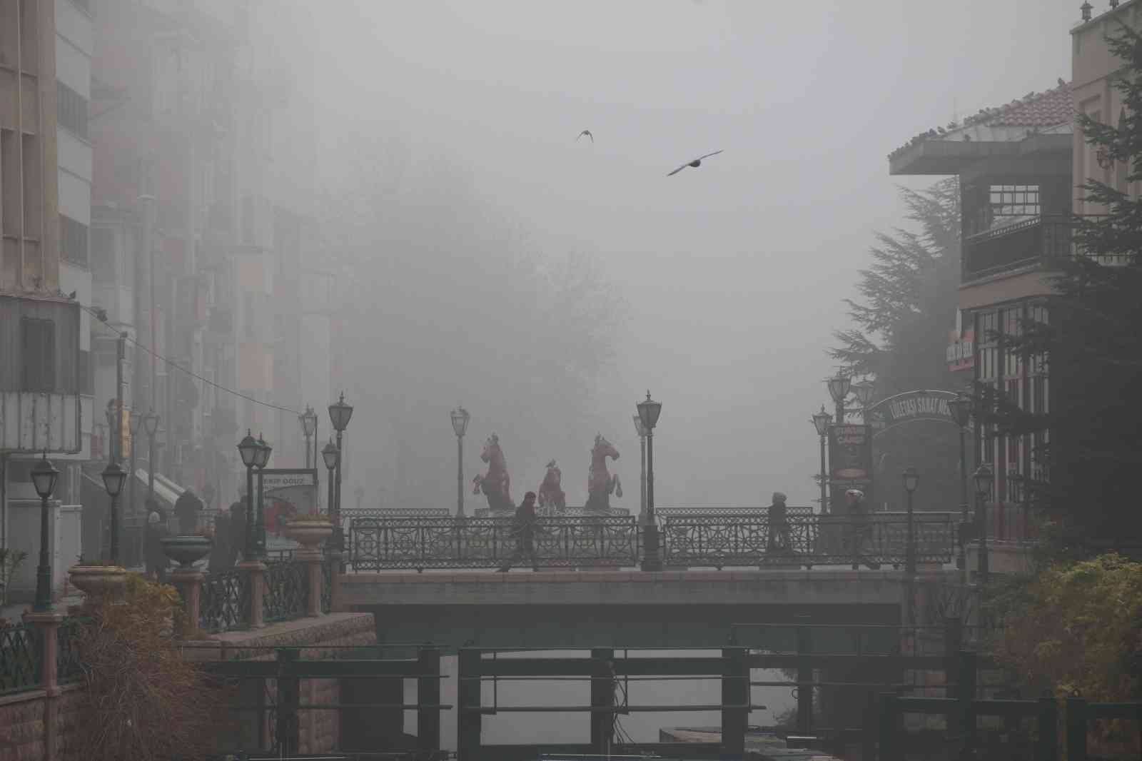 Sabah saatlerinde Eskişehir’in üzerini kaplayan yoğun sis tabakası, seyrine doyumsuz manzaralar oluşturdu.