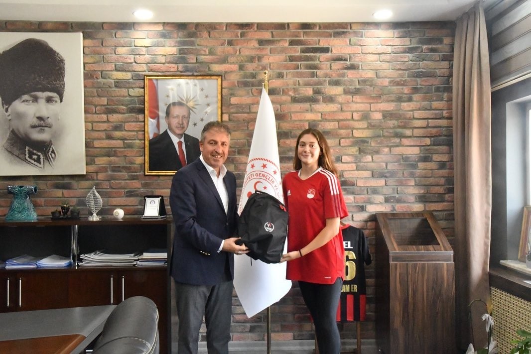 Eskişehir İl Spor Müdürü Abdulselam Er, Eskişehirli yüzücüler ile bir araya gelerek tebrik etti.