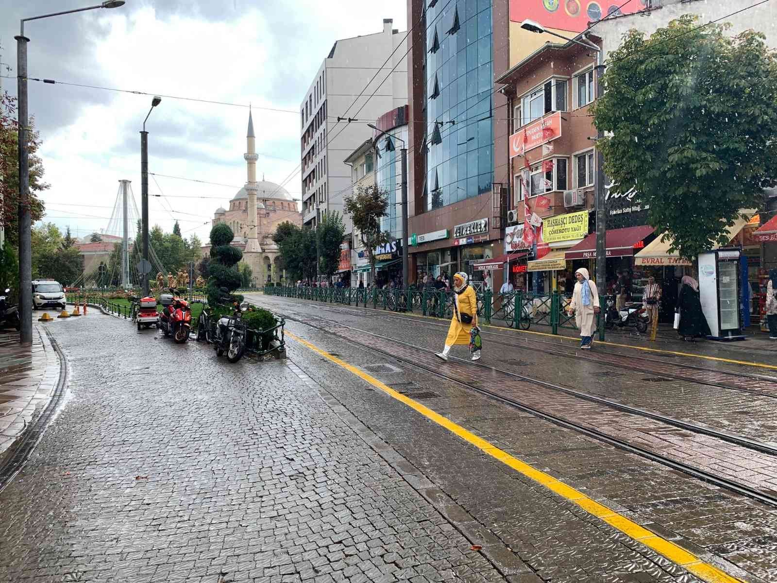 ESKİŞEHİR’DE GÜNEŞLİ GEÇEN GÜNLERİN ARDINDAN BİRKAÇ GÜNDÜR YAĞIŞ ETKİSİNİ GÖSTERİRKEN, AKŞAMÜZERİ BASTIRAN YAZ YAĞMURU VATANDAŞLARI HAZIRLIKSIZ YAKALADI.