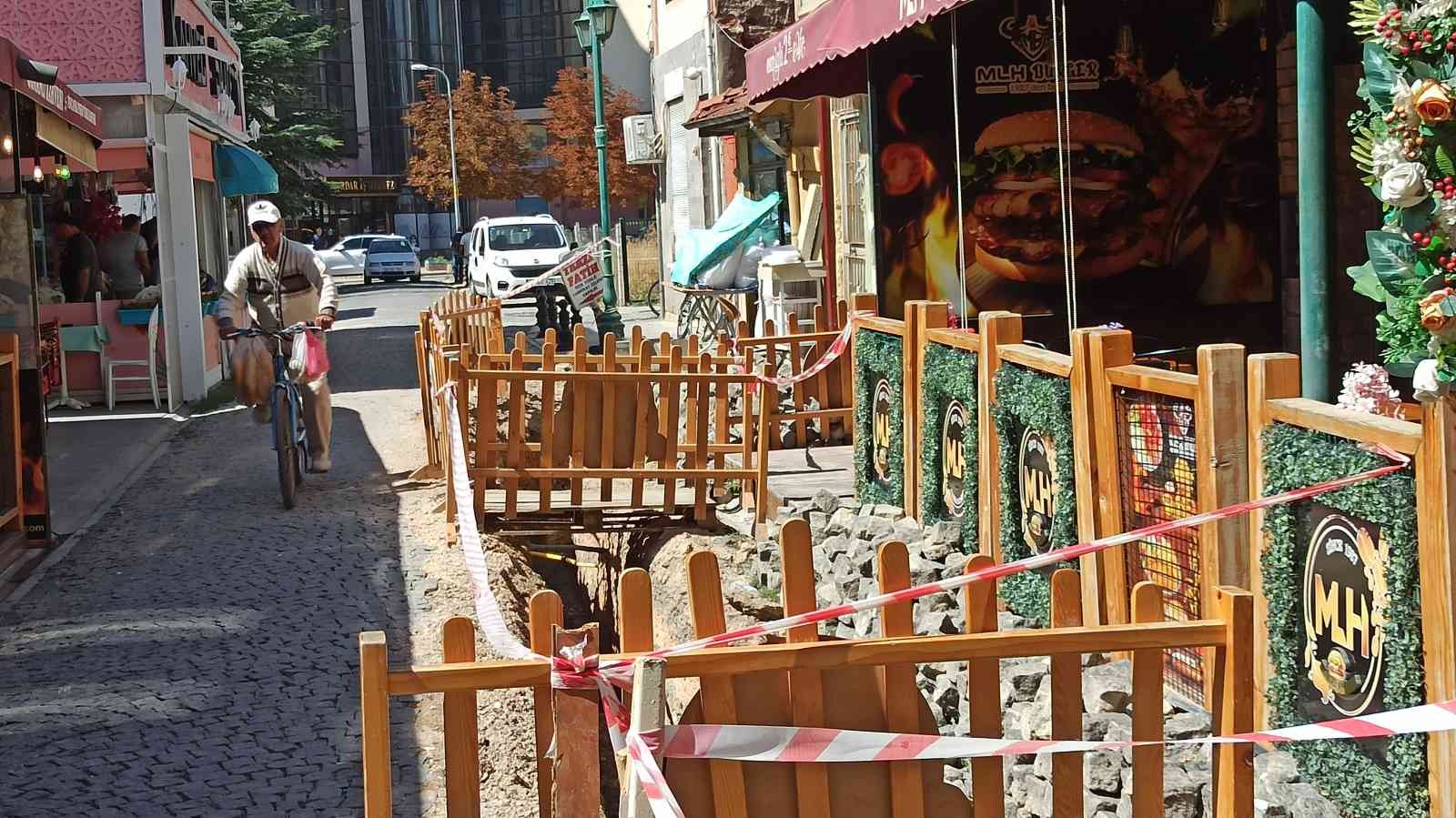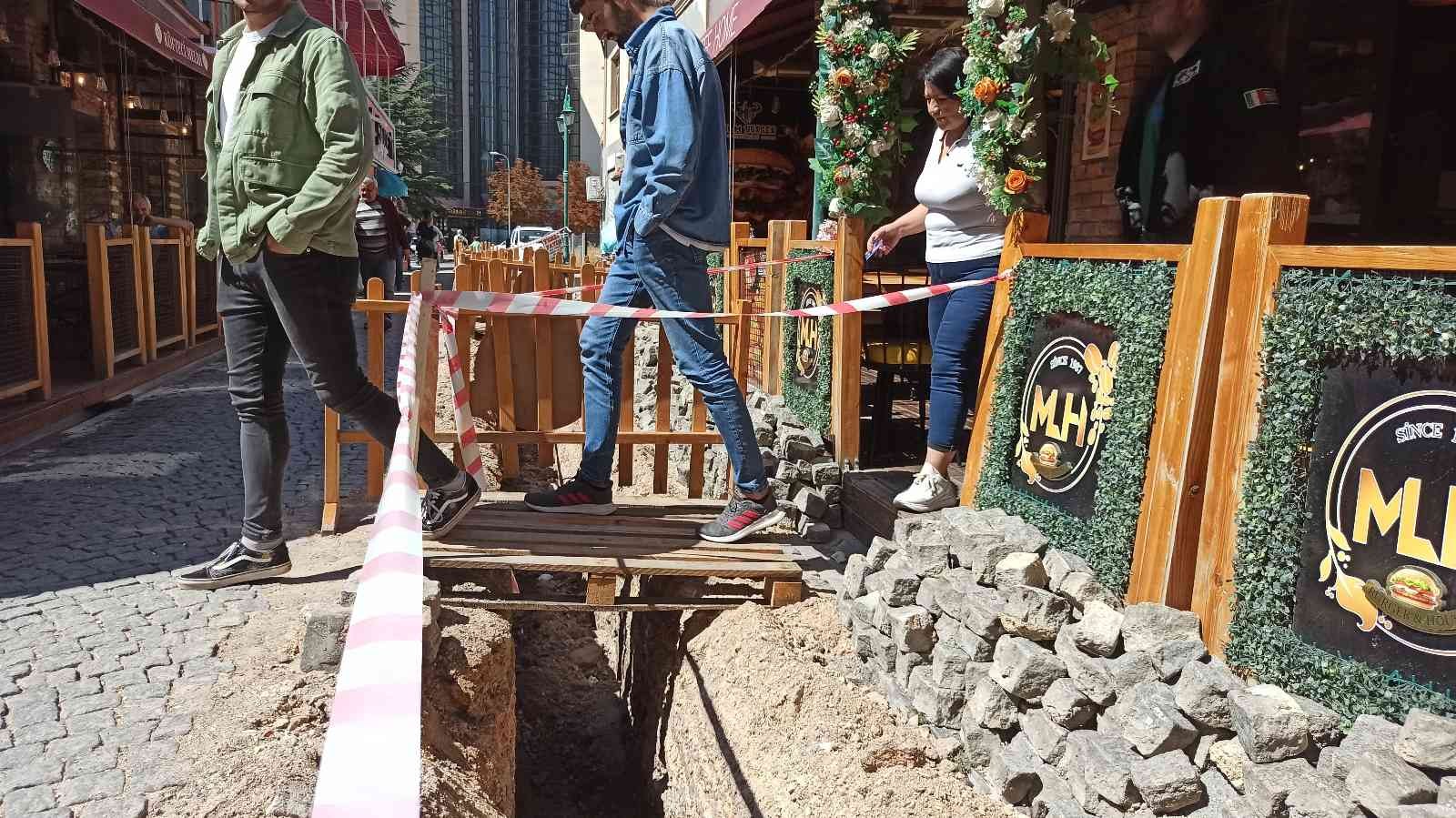 Eskişehir’de altyapı çalışması nedeniyle işletmeleri önünde açılan çukur üzerine tahtadan köprü yapan esnafın pratik zekâsı takdir topladı.