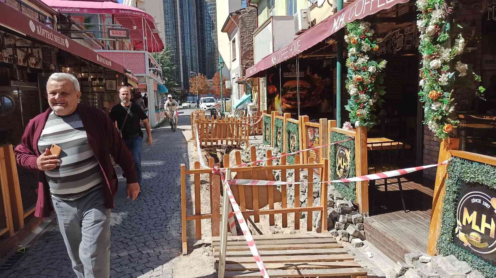 ESKİŞEHİR’DE ALTYAPI ÇALIŞMASI NEDENİYLE İŞLETİMLERİ ÖNÜNDE AÇILAN ÇUKURLARA TAHTADAN KÖPRÜ YAPAN ESNAFIN PRATİK ZEKÂSI TAKDİR TOPLADI.