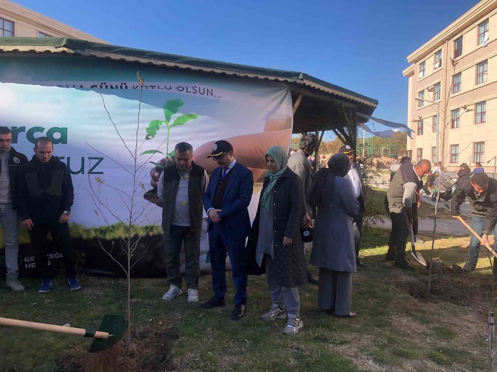 Gediz’de KYK Öğrenci yurdu bahçesinde, Tarım ve Orman Bakanlığının Milli Ağaçlandırma Günü çerçevesinde düzenlenen etkinlikte fidanlar toprakla buluştu.