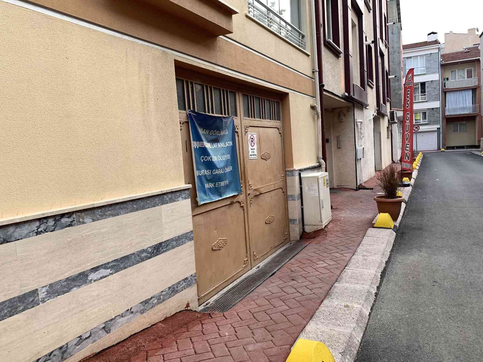 Eskişehir’de bir vatandaş, garaj kapısının önüne park edilen araçlardan rahatsız olunca, çözümü büyük bir pankart ile yazı asmakta buldu.