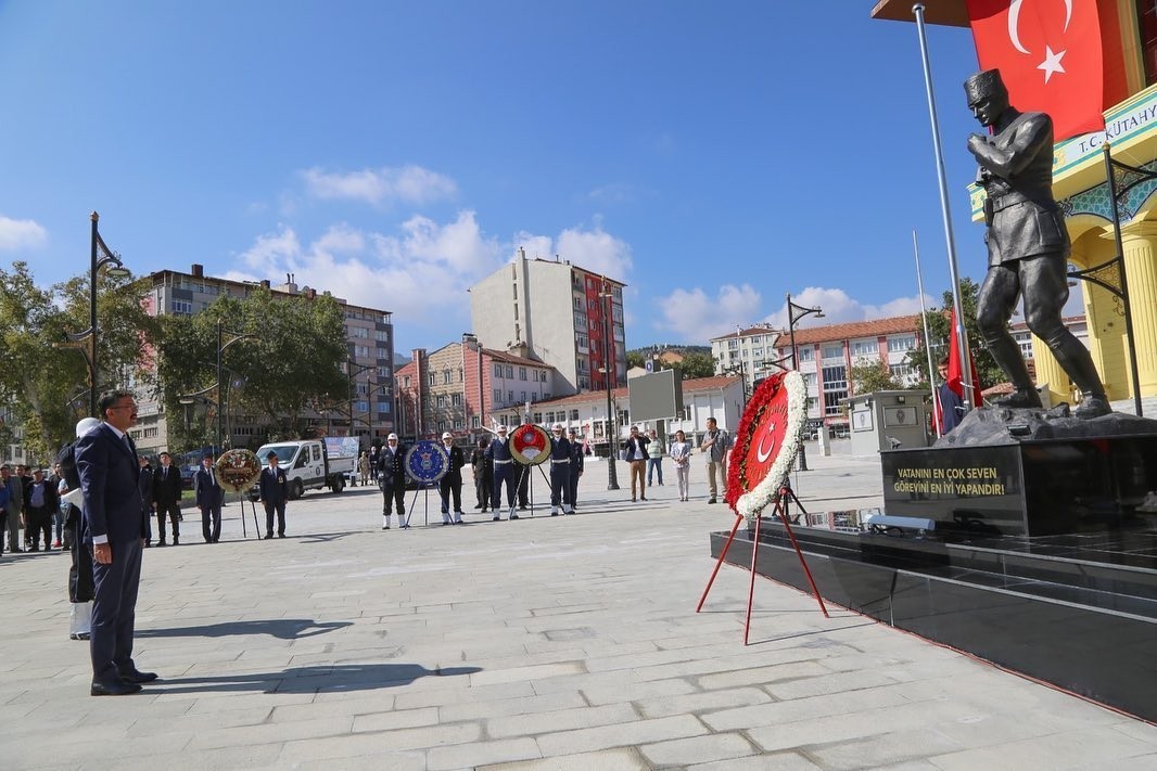 Atatürk’e “Gazi” unvanı ve “Mareşal” rütbesinin verildiği Gaziler Günü sebebiyle; Vali Ali Çelik, Tugay ve Garnizon Komutanı Tuğgeneral Necati Gündüz, Belediye Başkanı Alim Işık ve Türkiye Muharip Gaziler Derneği Şube Bakanı Şaban Başoğul tarafından Atatürk Anıtı’na çelenk sunuldu.
