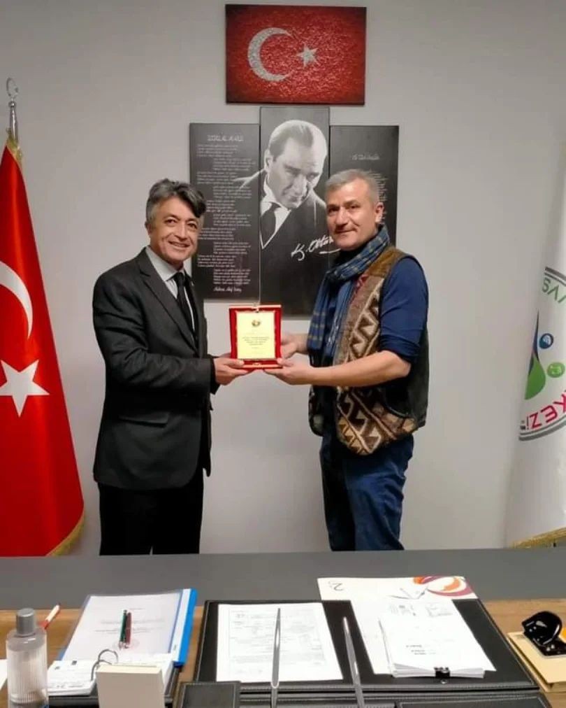 Mehmet Yıldırım’a Okul Müdürü İsmail Karaoğlan tarafından plaket takdim edildi.