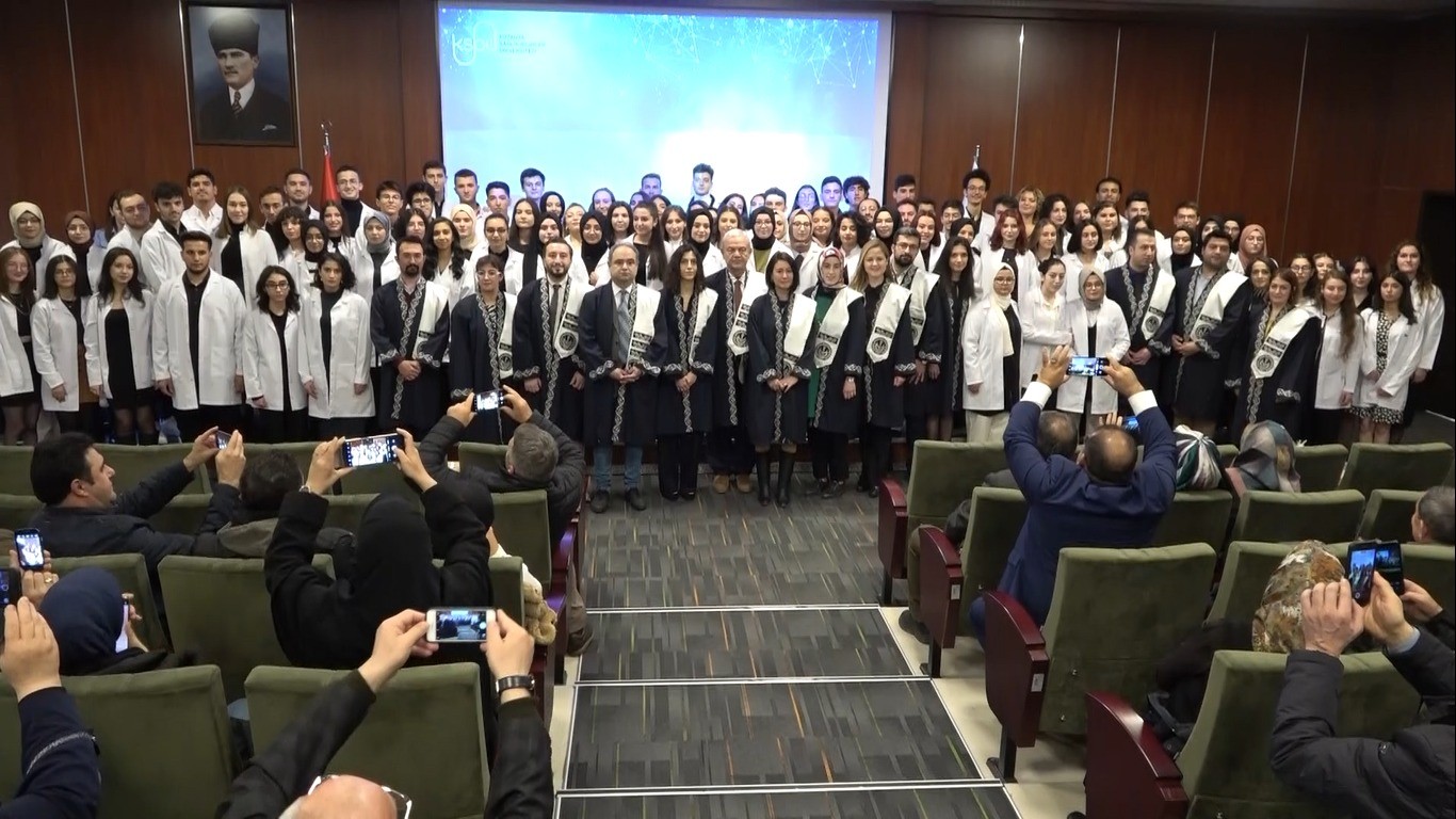 KSBÜ Tıp Fakültesi Hekim Sinan Konferans Salonu’ndaki törende 92 öğrencinin beyaz önlükleri, protokol mensuplarınca giydirildi.
