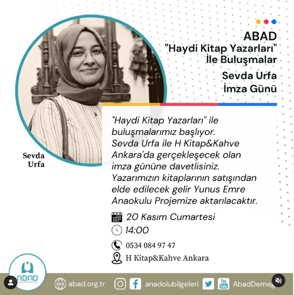 “H Yayınları & Haydi Kitap Yazarları” ile imza gününde buluşuyor… H Yayınları ”Haydi Kitap Yazarları” ile buluşuyor. Ankara’da gerçekleşecek olan imza gününde kitapların satışından elde edilecek gelir, Yunus Emre Anaokulu Projesine aktarılacaktır.