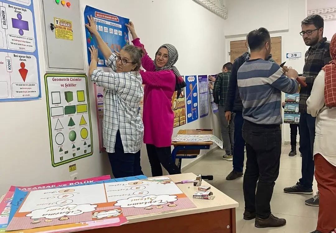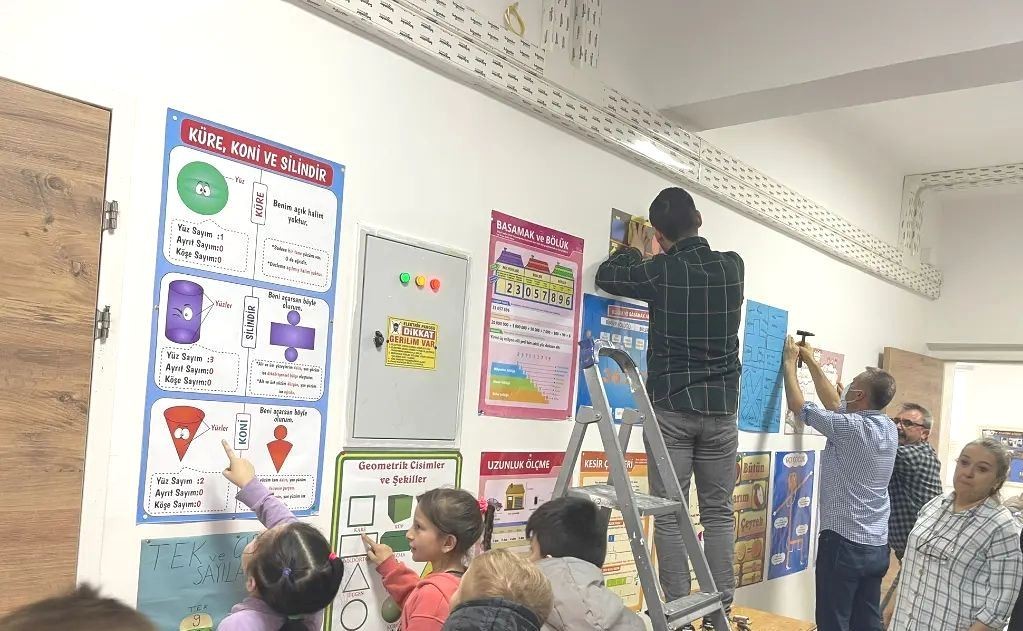Hayata geçirdikleri, “Matematik Sokağı” projesiyle öğrencilerin teneffüslerde koridor üzerinde çeşitli geometrik şekiller, formüller, terimler ve sayılar aracılığıyla gizli olarak öğrenmelerine hizmet etmeyi amaçladıklarını söyleyen Sınıf Öğretmeni Mehmet Kaya,” Bu proje için önce koridora asacağımız afiş ve bilgi panolarını belirledik. Sınıf Öğretmenimiz Cavit Özçil ile birlikte nasıl bir çalışma yapacağımızı araştırdık, tasarladık ve malzemeleri temin ettik. Malzemelerin tasarımında yerleştirilmesinde tüm arkadaşlar yardım etti. Ayrıca 4. sınıf öğrencileri de materyal yaparak katkıda bulundular. Hazırladığımız afiş ve panoları koridorumuza öğrencilerimizin rahat görebileceği şekilde astık. Yaptığımız bu çalışma ile öğrencilerimizin matematiğe olan ilgisinin artmasını ve derslerde öğrendikleri temel matematik bilgilerini pekiştireceklerine inanıyoruz” dedi.