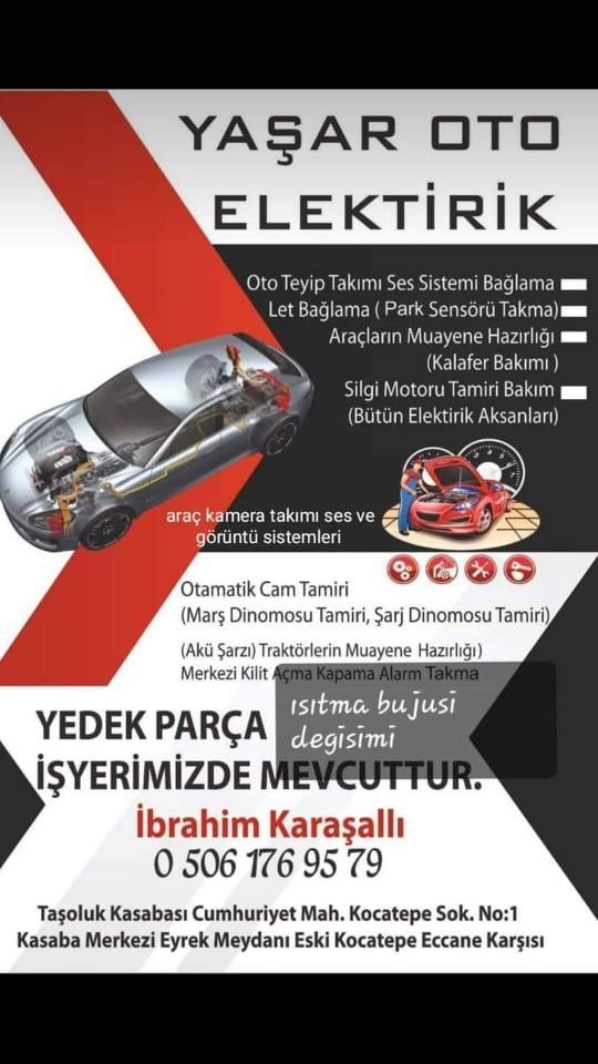 İbrahim Karaşallı ”Meslek altın bileziktir öğretenden Allah razı olsun” 3 yıldır Taşoluk, Savran, Nuh ve çevre kasabalara hizmet veren oto elektrik ustası 26 yaşındaki İbrahim Karaşallı usta müşterilerine sadece iş yerinde değil, onların istedikleri yerde de hizmet vermeye devam ediyor.